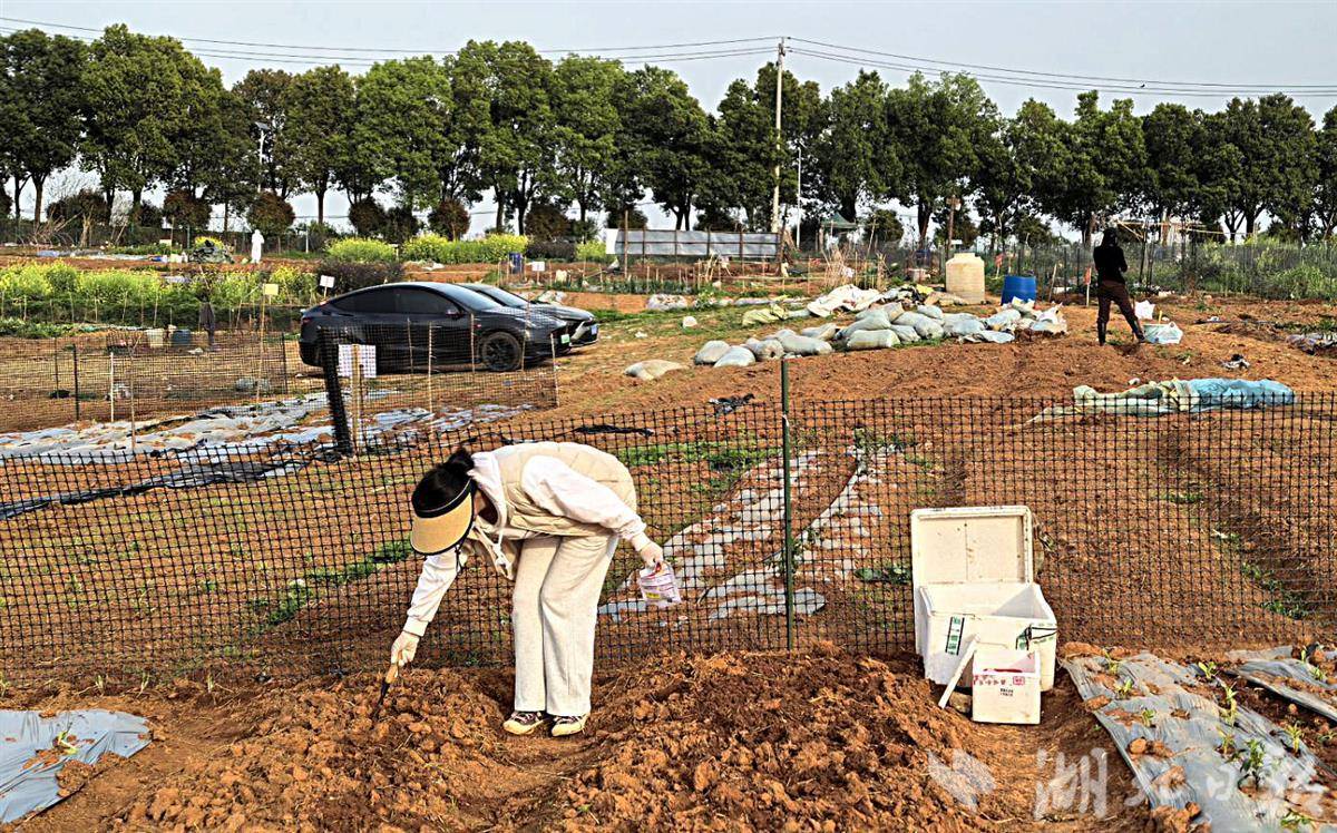 但在此租种的城市白领们都亲自下地干农活,有的人在地里搭建了休息场所,有的甚至把家中沙发搬来,放在菜地的树下,营造一个属于自己的田间桃源。(湖北日报全媒记者 朱熙勇 摄)