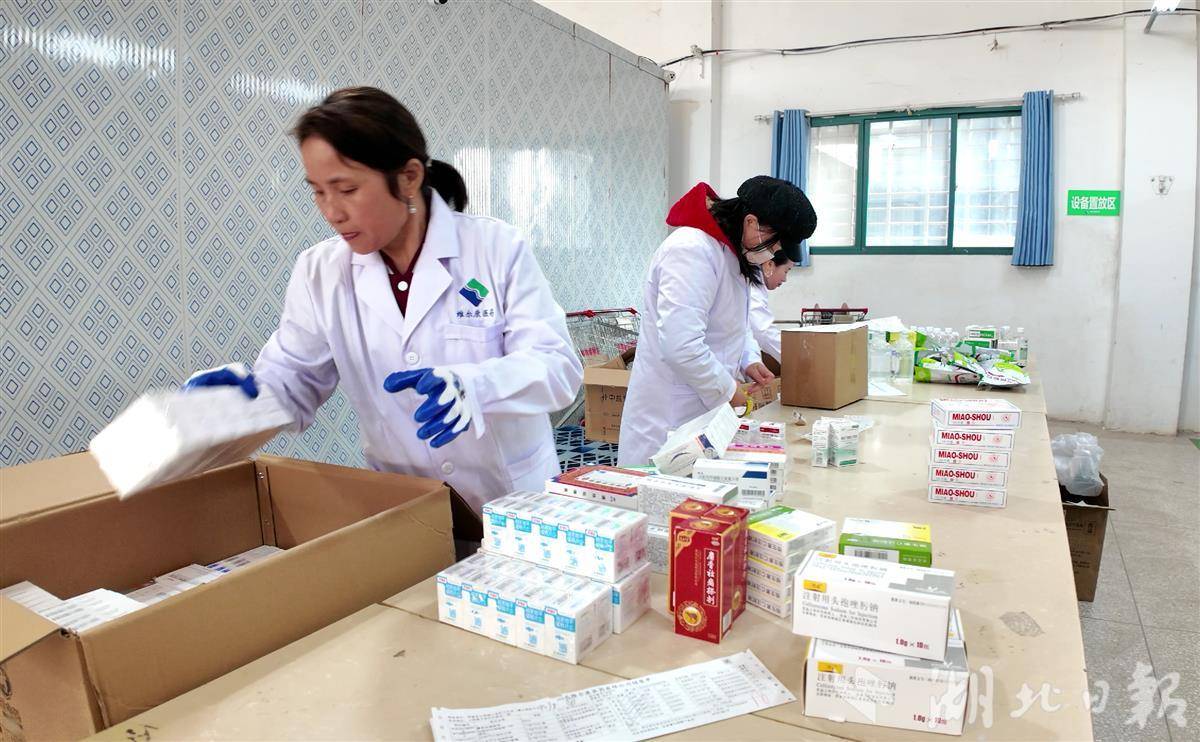 湖北维尔康医药有限公司配送员把药品送到阳新隧洞村卫生室。(湖北日报全媒记者 肖露 摄)