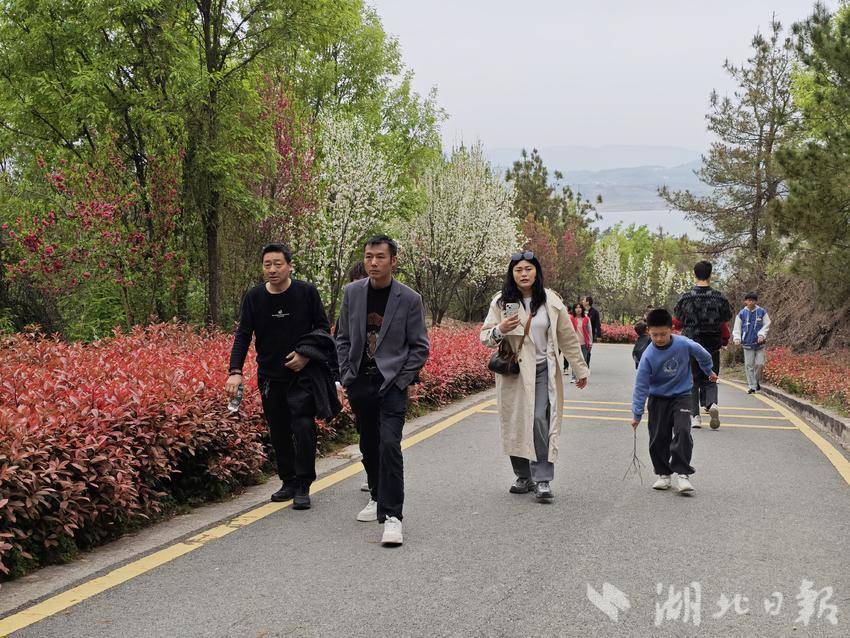 4月4日,记者来到如意岛,只见岛上绿树葱茏,桃花、樱花等春季花卉竞相绽放,五彩斑斓,香气扑鼻。游客们或悠闲地漫步于蜿蜒曲折的步道上,享受着春日的惬意时光;或驻足于观景台,极目远眺,丹江口水库的壮丽景色尽收眼底,令人心旷神怡。