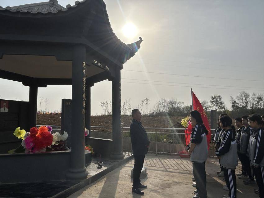 石家河镇初级中学相关负责人在仪式上讲话,鼓励同学们要传承英雄精神,好好学习,将来报效祖国。