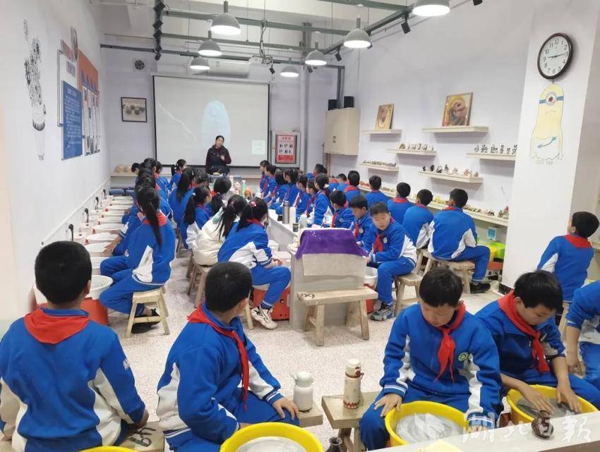 在特色课程体验环节中,孩子们在动手实践中感受知识的魅力。陶艺课上,柔软的陶泥在指尖流转,传统工艺的韵味悄然融入心间;科技馆里,太阳能小车在组装中成型,激发起探索科学的热情;篮球馆内,跃动的身影挥洒汗水,展现团队协作的风采;书法教室里,墨香弥漫,笔走龙蛇间书写着对传统文化的敬仰……漕河校区的教师们以精湛的专业素养和独特的教学智慧,为农村校区的孩子们打开了新世界的大门,让他们切身感受优质教育的深厚底蕴。