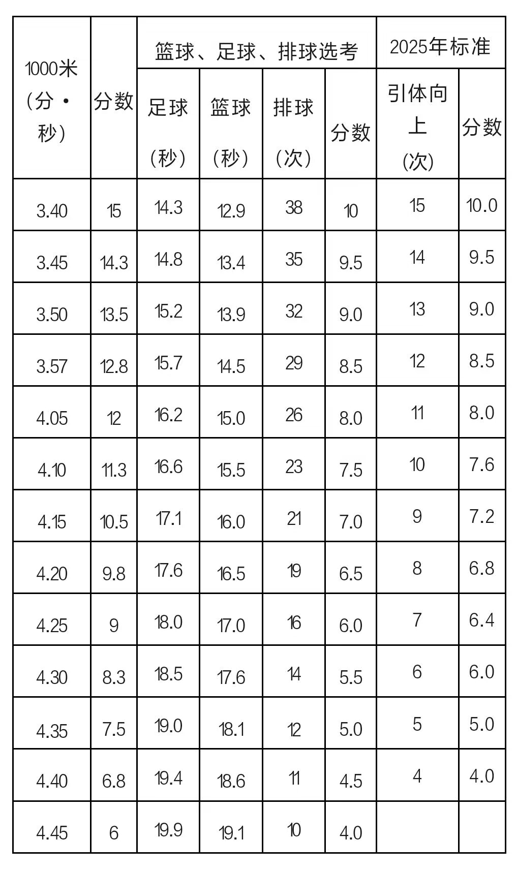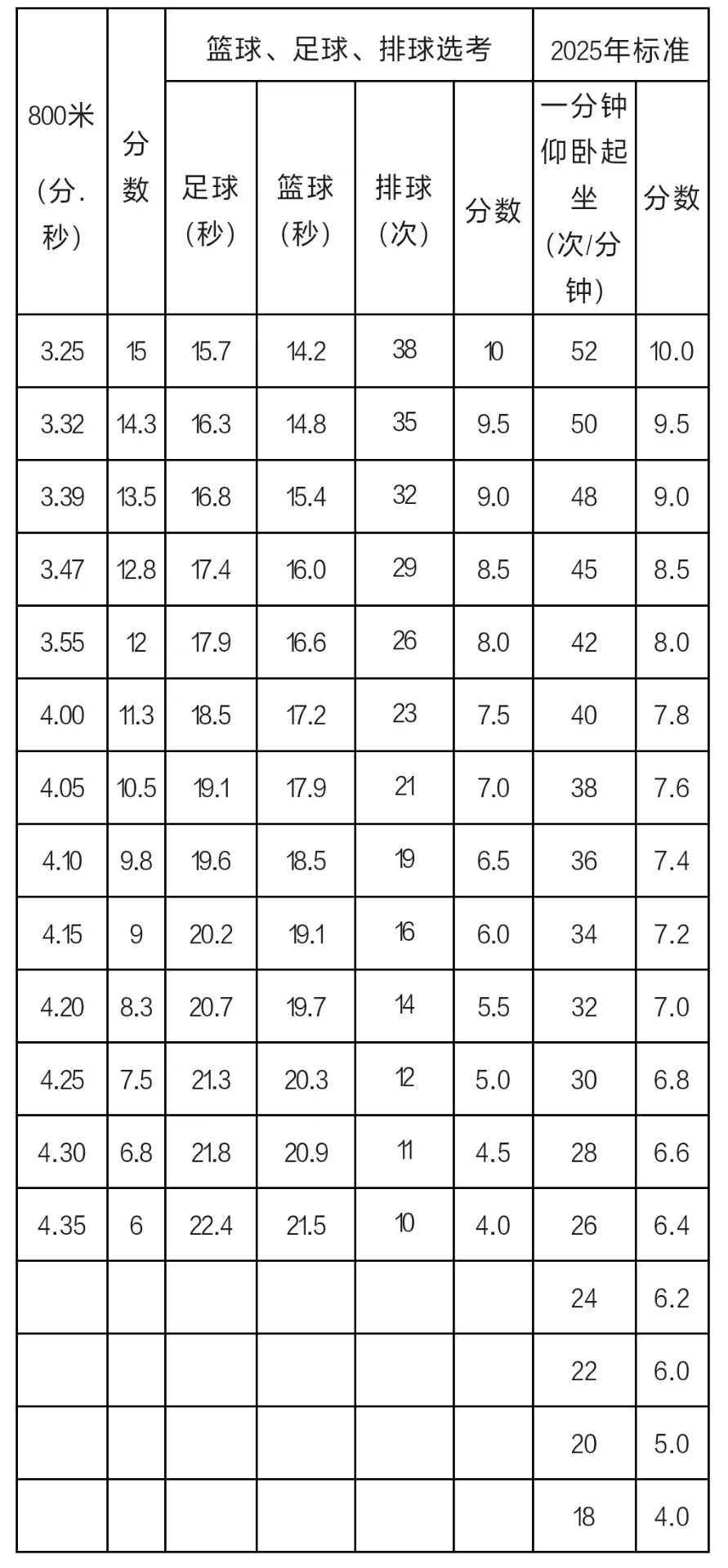 (一)必考项目:男生1000米跑、女生800米跑(15分)男生引体向上、女生1分钟仰卧起坐(10分);