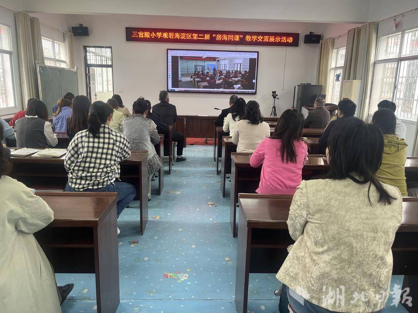 湖北日报客户端讯(通讯员 王平 张雯雯 何珍)4月9日,丹江口市三官殿中心小学组织全体教师集中观看了海淀区第二届“房海同课”教学交流展示活动。此次活动由北京市房山区教师进修学校和北京市海淀区教师进修学校联合主办,海淀区教师进修学校附属房山实验学校承办,通过创先泰克直播平台进行线上直播。