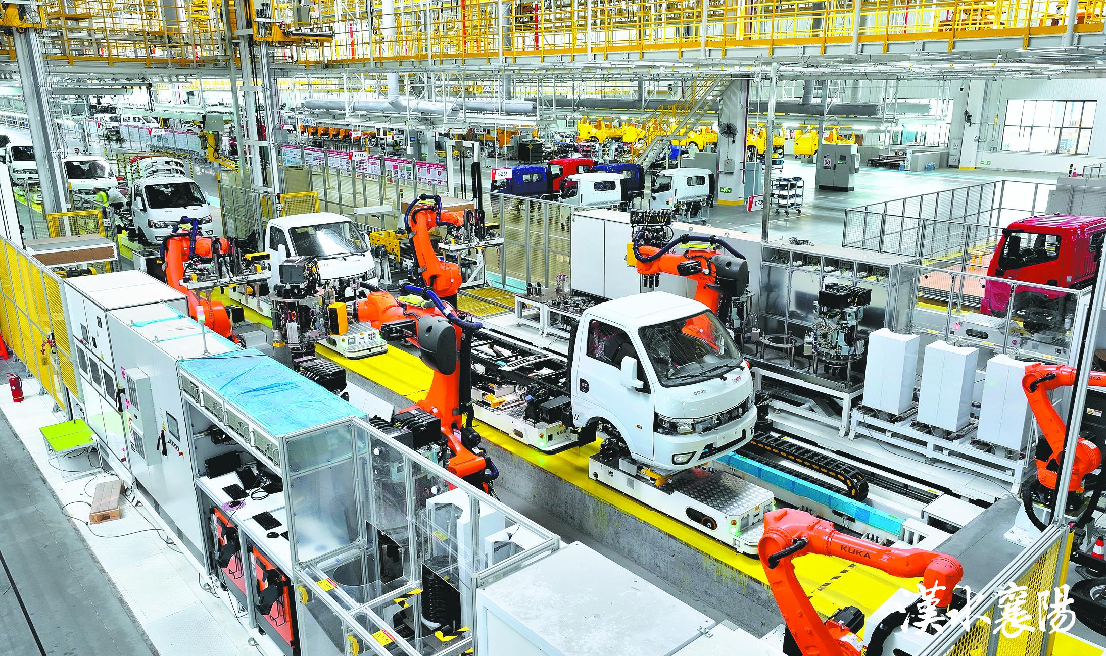 4月2日,在东风汽车股份有限公司(简称东风汽车股份)制造总部襄阳工厂智能制造绿色工厂项目新一总装车间的现代化流水线上,车架、轮胎、发动机等部件精准装配,一辆辆崭新的整车迅速成型。