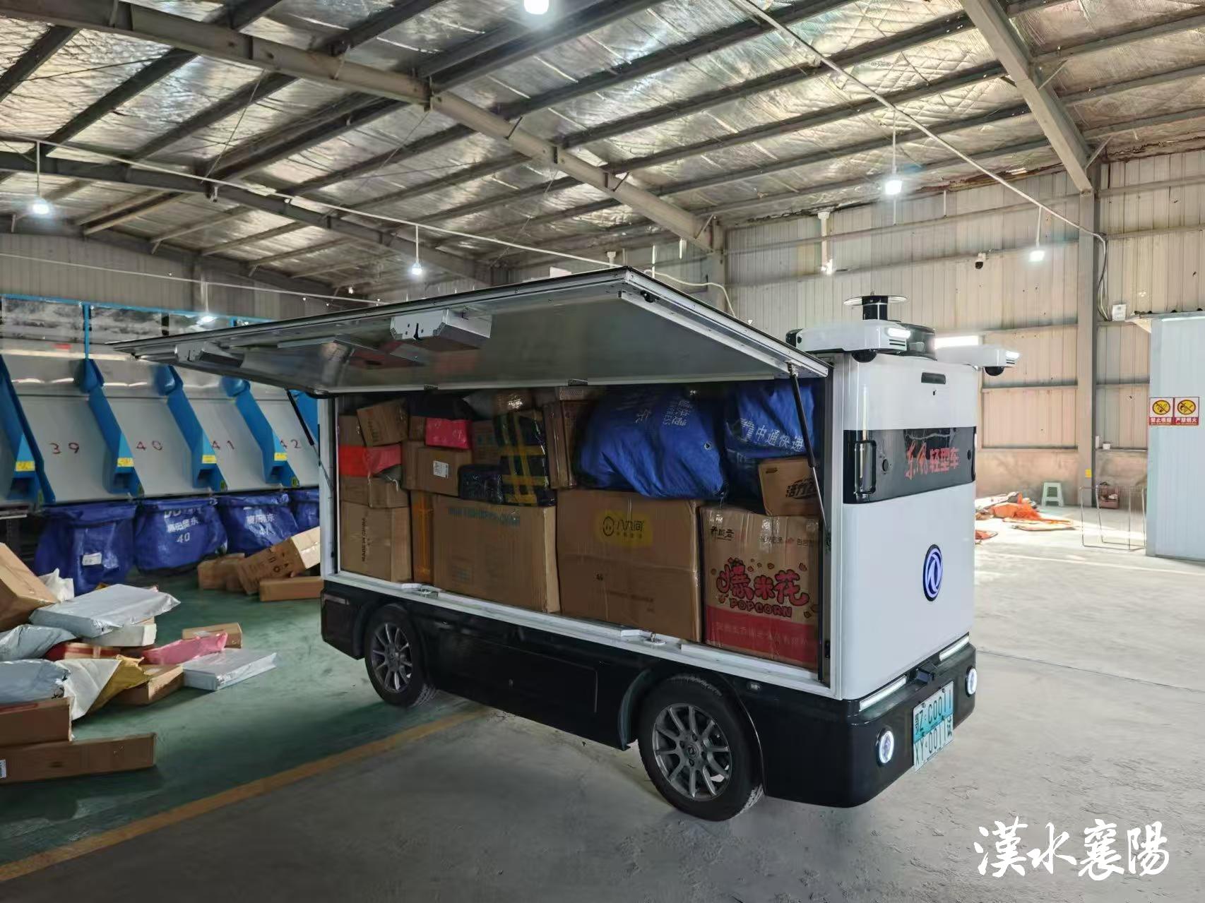 襄城区尹集乡,一辆装满快递的无人车