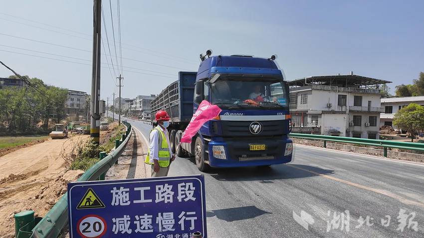 湖北通远建设工程有限公司总经理朱剑勋说:“目前我们采取车辆分流的形式抓紧施工,通过设置临时便道保障基础通行,同时,为了确保施工安全,有20余人在重点施工路段引导运输车辆,施工区2公里前设置绕行警示指引,应急小组全天候待命。实现‘占道不堵路’,全力保障项目建设安全有序推进。”