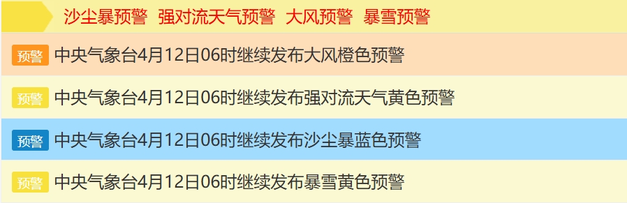 中央气象台12日6时继续发布沙尘暴蓝色预警