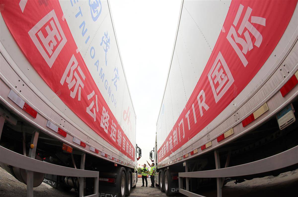 4月10日,荆门市宏茂物流有限公司承运的湖北首单国际公路运输(TIR)业务正式启运。这批载有汽车零配件的运输车队从荆门传化公路港出发,预计8天后直达乌兹别克斯坦,标志着湖北正式加入TIR国际公路运输网络,填补了中部地区跨境公路运输的空白。据了解,湖北省开展国际公路运输(TIR)业务,可使整体运输时效提升40%,单次通关成本降低30%,实现湖北至“丝绸之路经济带”国际公路运输通道全面贯通,为全省汽车零部件、光电子等主导产业直通欧亚、扩大出口开辟新渠道。 (视界网 赵平 欧阳萍 摄)