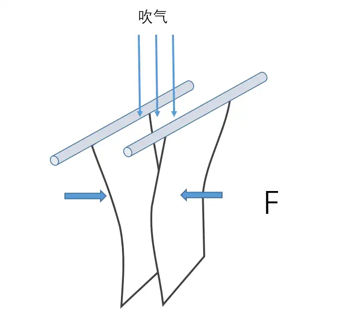 那位看官说了,风力大不是气压高吗?怎么“气压骤降”了呢?这里就不得不提到“伯努利定律”。简单来说就是,“流体(如空气、水)速度越快的地方,压力越小;速度越慢的地方,压力越大。”如果不信,那你可以简单地做个实验:左右手各拿一张纸,平行排列,中间留个狭窄缝隙,然后沿着缝隙用力吹起。你想,这两张纸会被吹开还是贴近?眼见为实,这两张纸在气流作用下向中间吸引(图3)。这就是“狭管效应”。