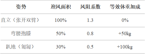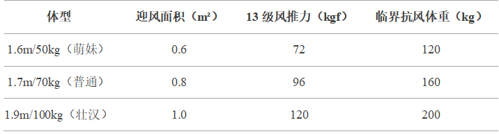 网上已经总结了不同体型的人的抗风能力,参见下表。