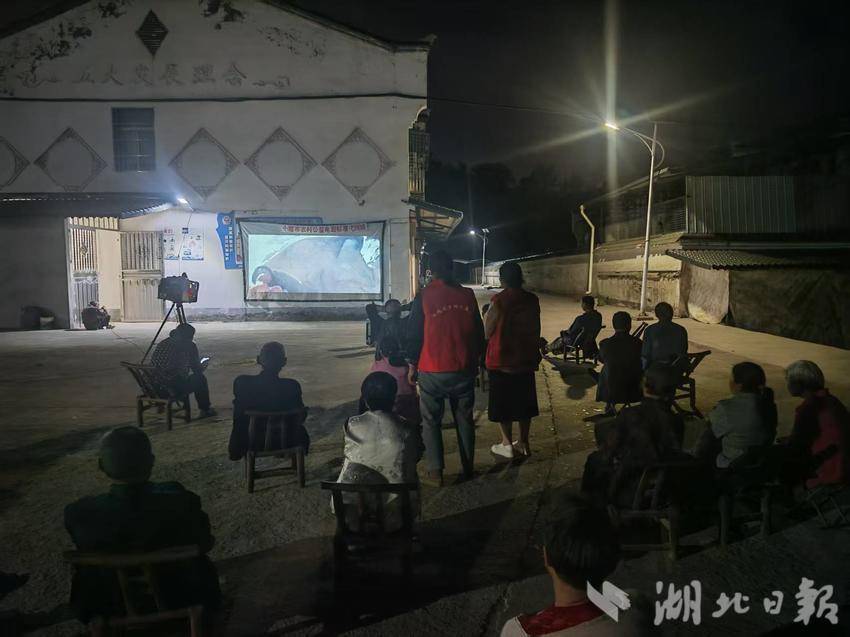 湖北日报客户端讯(通讯员肖明玉 陈彦)4月16日晚,丹江口市三官殿街办阳西沟村安置点被电影光束点亮,村委会联合三官殿文化站组织的“红色电影放映活动”在此举行。