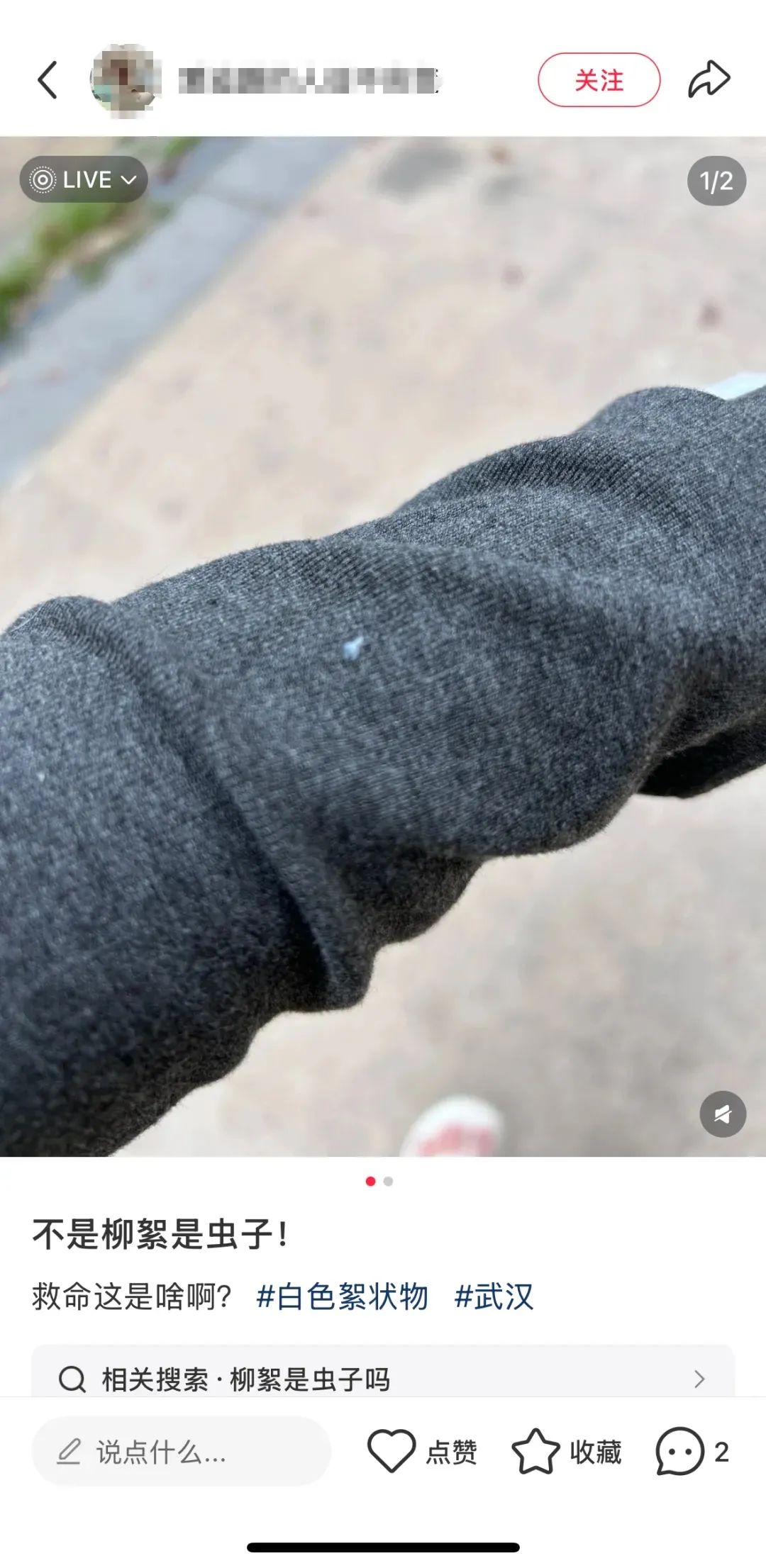 从赵女士上传的照片中可以看到,白色虫子体长约2毫米,中心“虫体”呈深褐色,披着飘逸的“毛绒羽衣”。