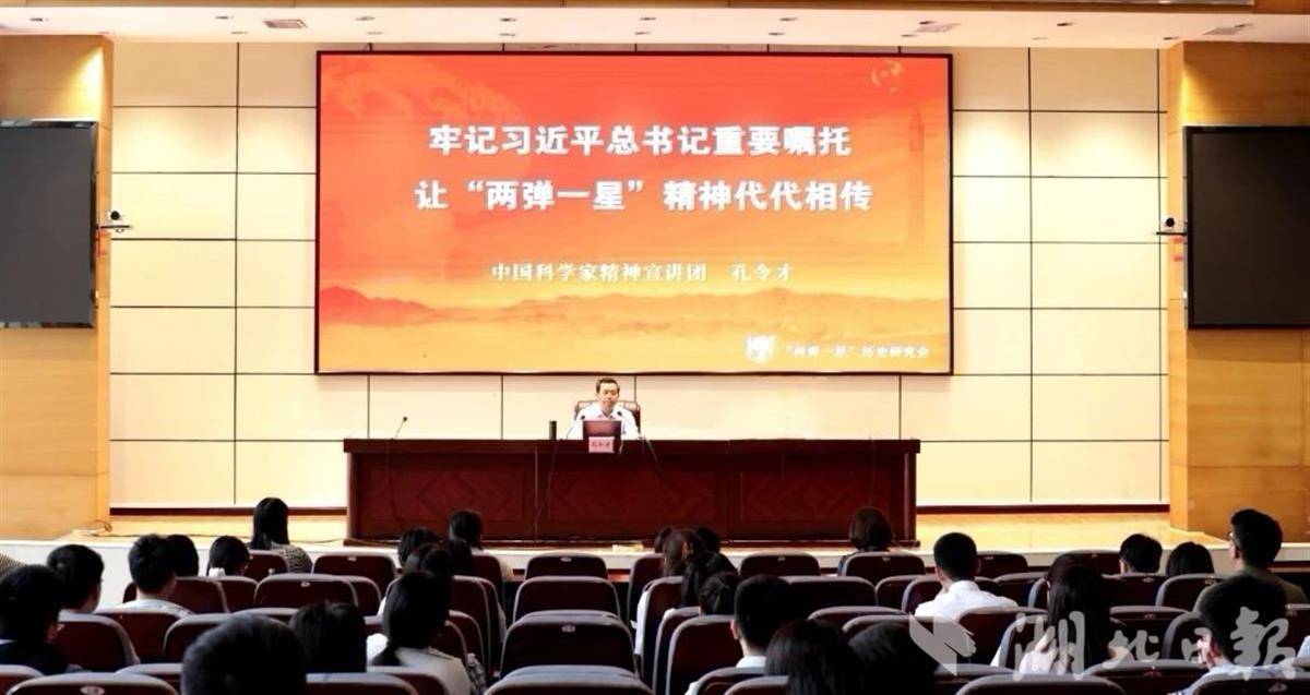 报告会上,孔令才围绕“两弹一星”精神的内涵、起源以及践行方式三个关键维度,从“两弹一星”精神源自伟大的历史使命、彰显伟大的民族品格、折射伟大的人生追求、照亮伟大的复兴之路四个方面展开论述。