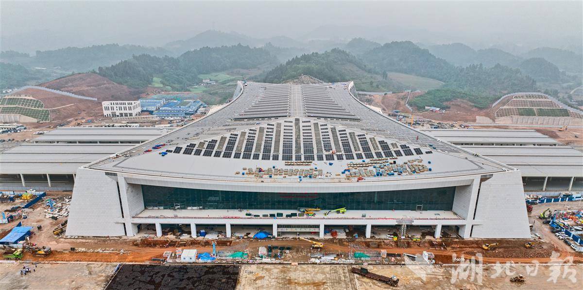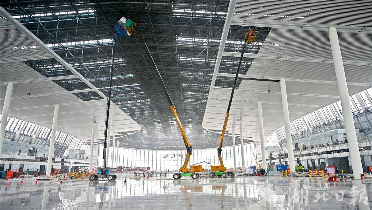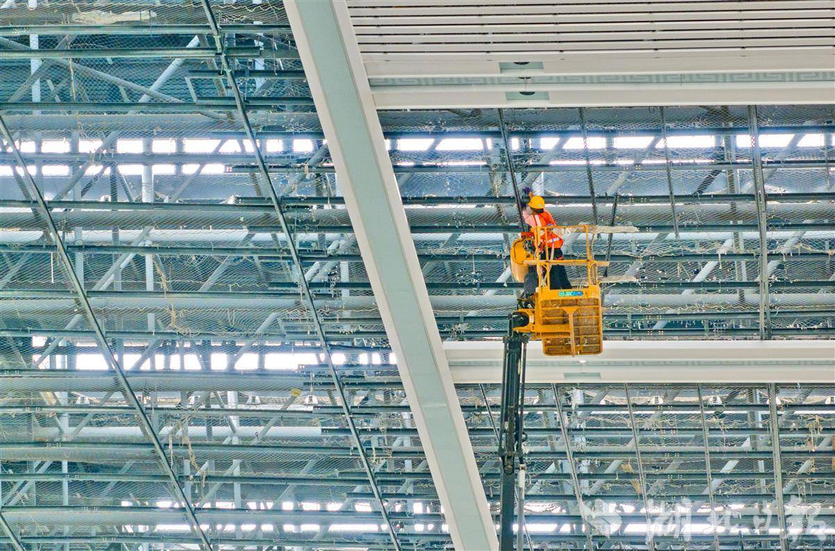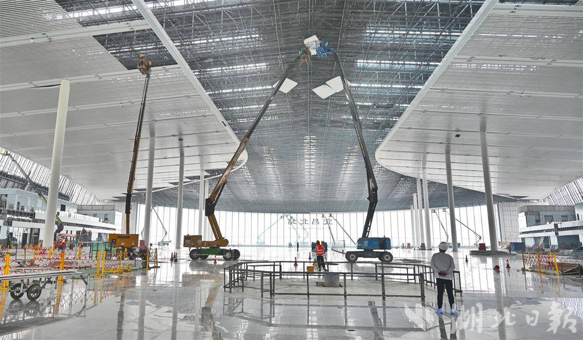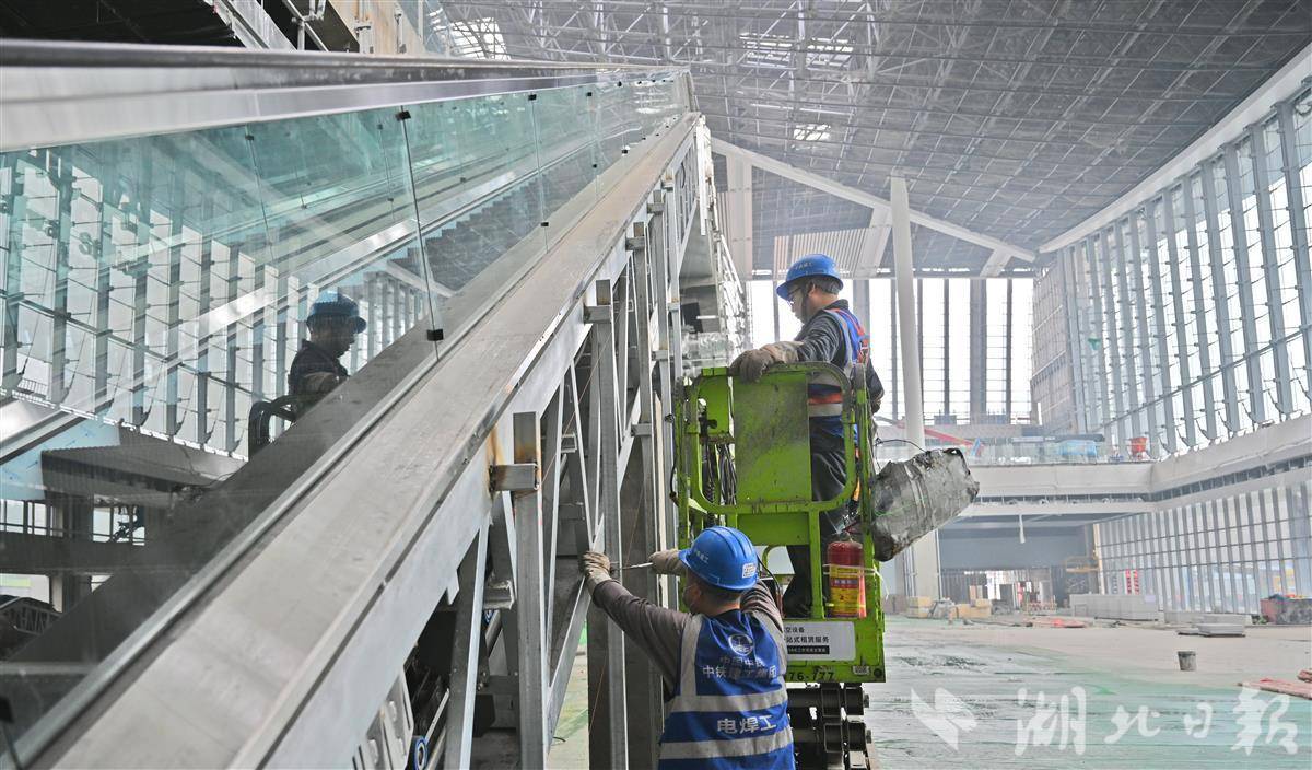 4月21日,宜昌高铁北站建设现场一片繁忙,各项工程稳步推进,全力冲刺年内通车目标。目前,站房主体结构已施工完成,屋盖提升作业顺利结束。外幕墙施工进度已达90%,装饰装修完成90%,机电安装也完成了95%,项目整体进入最后的收尾攻坚阶段。宜昌高铁北站是沿江高铁武汉至宜昌段的终点站,也是多条高铁交汇的重要枢纽车站。其车场规模为9台20线,总建筑面积约8万平方米。站房采用线侧+高架候车站型,设计理念融合“两岸连山、高峡平湖、大国重器、山水典藏”等地域文化元素,建成后将成为宜昌崭新的城市门户,届时,宜昌市民的出行将更加便捷,也将为宜昌的旅游、商贸等产业注入新的活力。(湖北日报全媒记者 刘曙松 通讯员 岳黎 摄)
