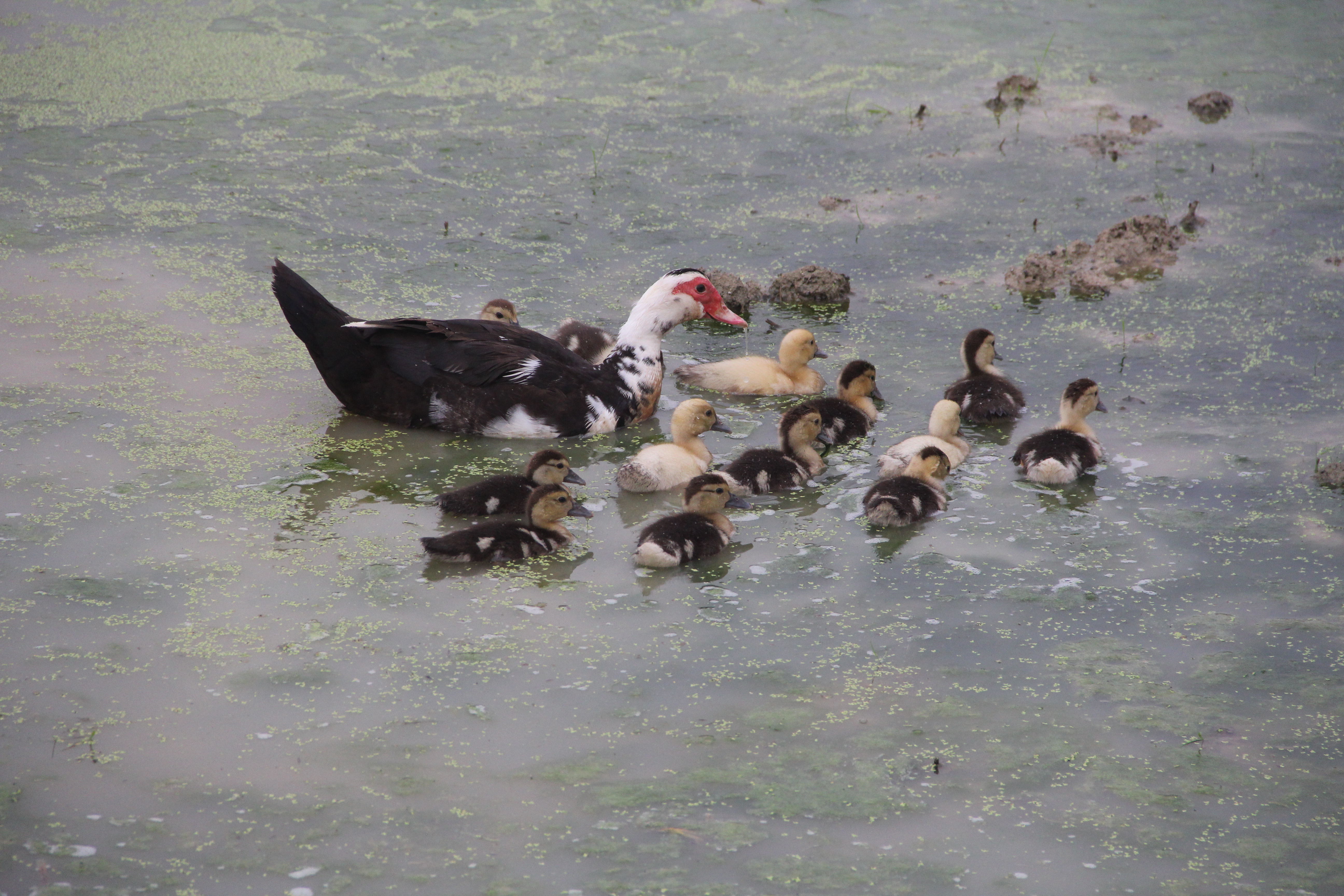 远观阳新屯鸟,其体型介于鹅鸭之间,体态扁阔矫健,堪称禽界“超模”。纯白羽毛在阳光下泛着珍珠般的光泽,黑白花羽的个体则宛如行走的水墨丹青。鲜红的喙部与脸颊两侧赤褐色皮瘤相映成趣,雄屯鸟发达的皮瘤自带“王者滤镜”。它们拥有强健有力的翅膀、短壮的双腿,尖锐的趾爪与宽厚的脚蹼,构建起顶级运动配置,既能在湖面划水捕食鱼虾,又能在田间上演“速度与激情”,甚至能展开双翅完成低空飞行,凭借敏捷身姿轻松解锁“逃生副本”,每一个野性瞬间都自带高光。