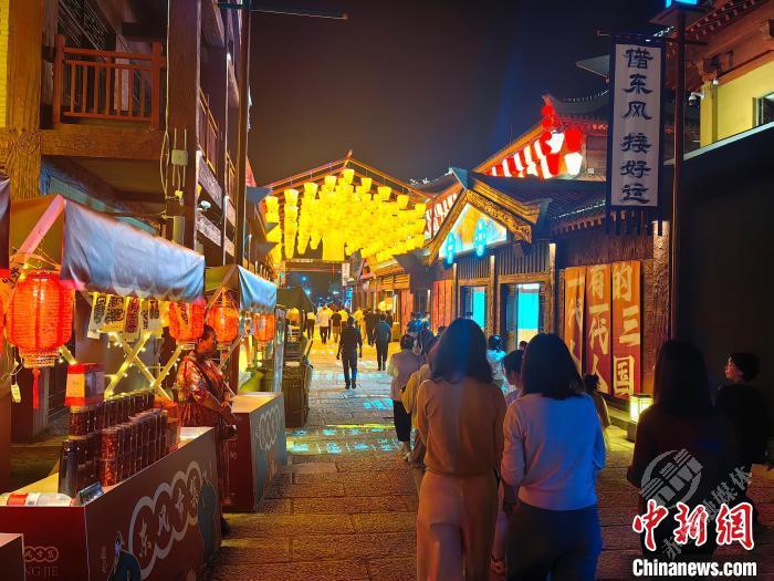 游客夜游赤壁三国古战场“东风街”。胡传林 摄