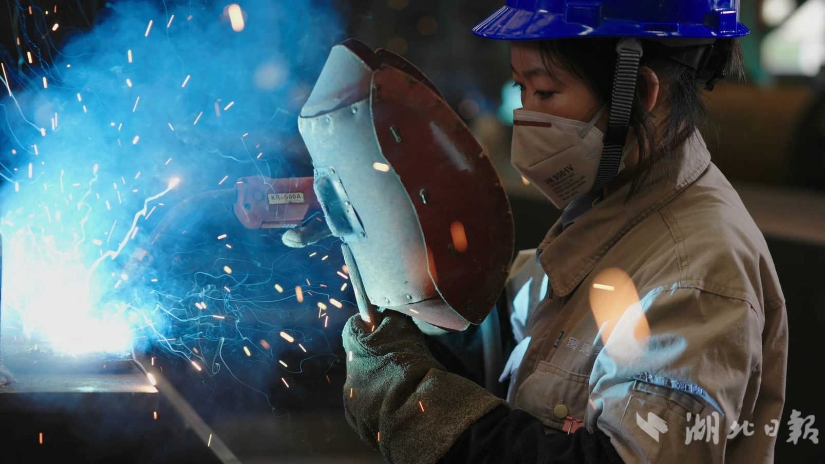 2013年,李云飞加入中建钢构武汉有限公司。在这里,她结识了一批焊工老师傅,学到了更多更好的焊接手艺,渐渐成了班组的多面手。