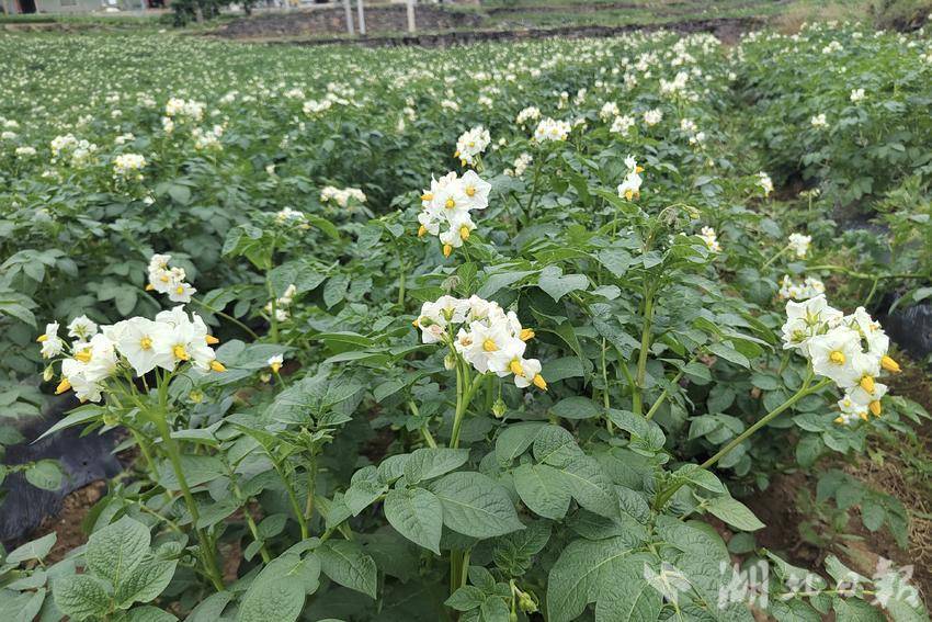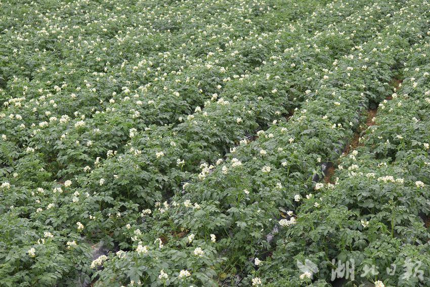 湖北日报客户端讯(通讯员 张鸣卓 张红美)俗话说“洋芋花开胜牡丹”。5月的三岔镇,马铃薯迎来了盛花期,走进三元坝村的马铃薯种植基地,一垄垄、一簇簇白色的花朵竞相绽放,美不胜收,随着微风吹拂,花朵在风中摇曳,在蓝天白云的映衬下,变成了一片美丽的花海,一派丰收在望的喜人景象展现眼前。