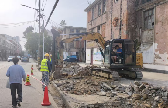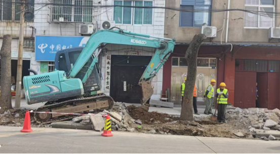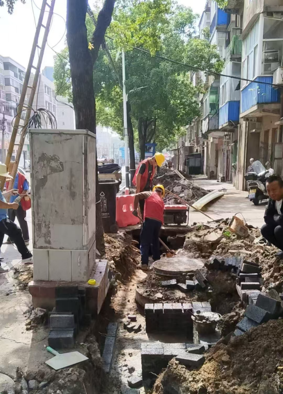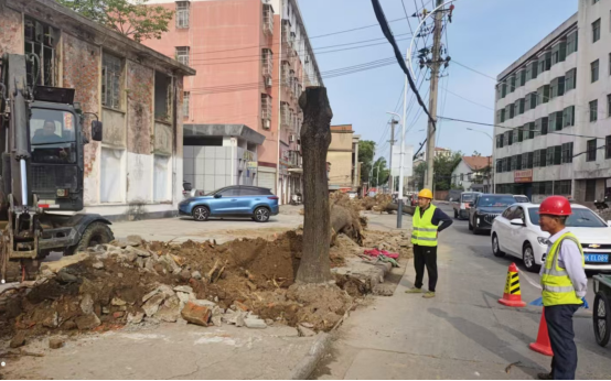 目前,项目施工已经进入前期准备阶段,走进施工现场,笔者看到一派繁忙的景象,工人师傅们正在进行树木移栽和弱电入地工作。
