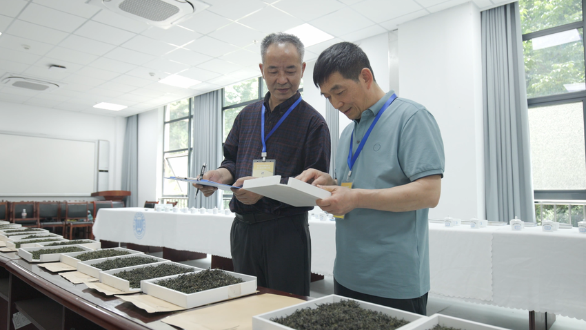 比赛采用“现场操作规范(5%)+制茶率(5%)+感官审评(90%)”的评分体系。评委不仅观察选手翻炒手法、设备操作安全度,还精确称量成品茶制率,更通过外形、汤色、香气、滋味、叶底五大维度进行感官评审,严苛程度堪比专业制茶赛事。