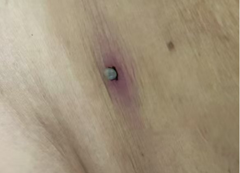 近期,70岁的李爷爷在山上劳作后发现腰部多了一颗“黑痣”,起初他并未在意,2周后因心慌、气短加重,到我院老年医学科就诊,郑玲主任体格检查时,赫然发现腰部有一颗“黑痣”,仔细询问后,她断定是蜱虫入侵,立即请感染性疾病科徐勇主任会诊,感染科团队对其进行“麻痹-移除-消毒”三步紧急处理,“黑痣”被成功取出。但这小小蜱虫,竟携带了重磅的“病毒”,进一步检查发现李爷爷已出现多器官功能损伤(肝、肾、心肌),并诊断为发热伴血小板减少综合征,所幸李爷爷经过及时治疗病情好转。