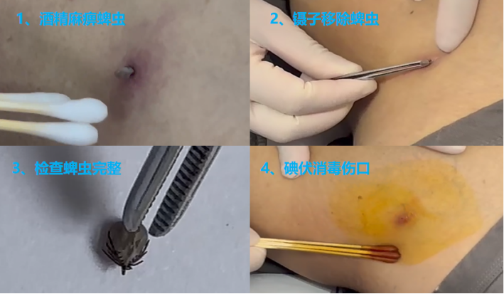 大家发现被蜱虫叮咬时,需要保持冷静,不要用烟头烫的“民间土法”,更不能有虫子已死不用管的“盲目乐观”,这样大错特错,按照以下四步处理方法,关键的时候可以救命。