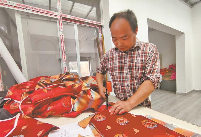 严爱民在裁剪衣料 楚天都市报极目新闻记者张盼摄