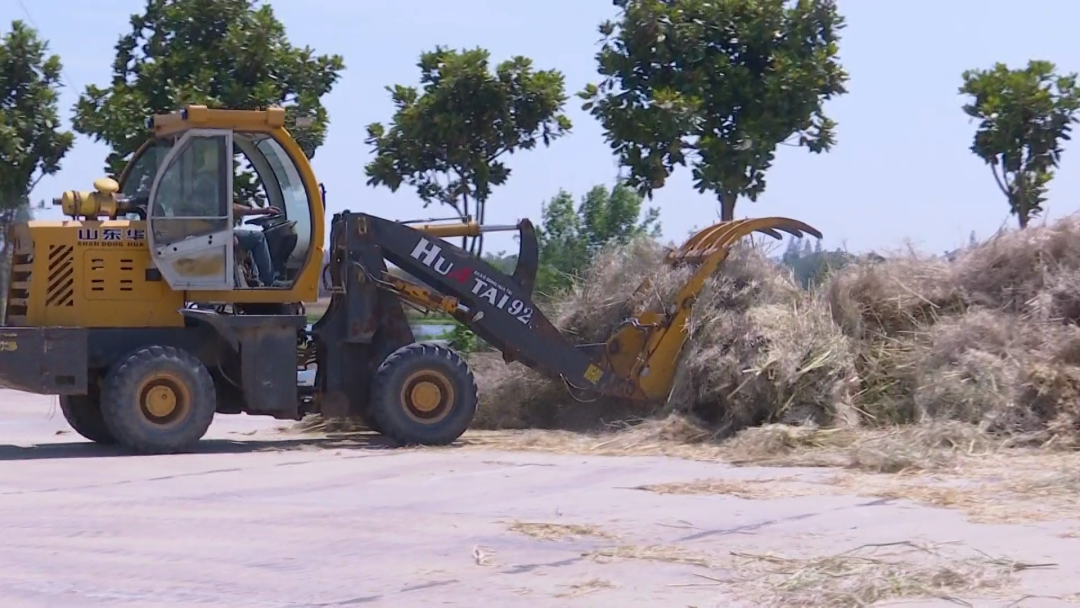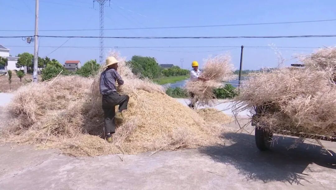 走进普济镇复兴场村,村民们正忙着将门口堆积的秸秆整理、打包,运往村里的集中清运点,等待转运至企业二次加工。