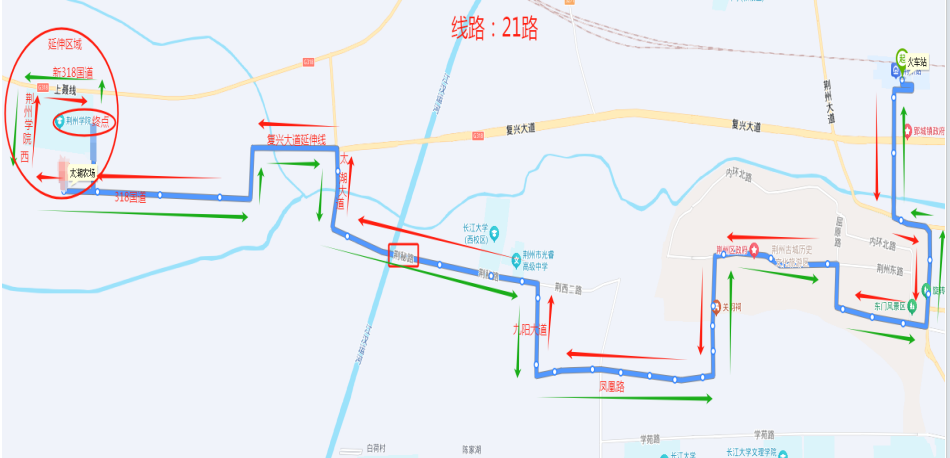 太湖宾馆、太湖邮局、荆州学院西门、荆州学院北门、荆州学院(首末站)