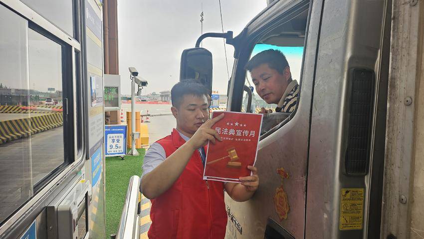 此外,志愿者们还在收费广场设立宣传点,向过往司乘发放民法典宣传资料,面对面向司乘宣传民法典知识,重点讲解与出行、交通纠纷等密切相关的法律条款,耐心解答司乘提出的法律疑问。