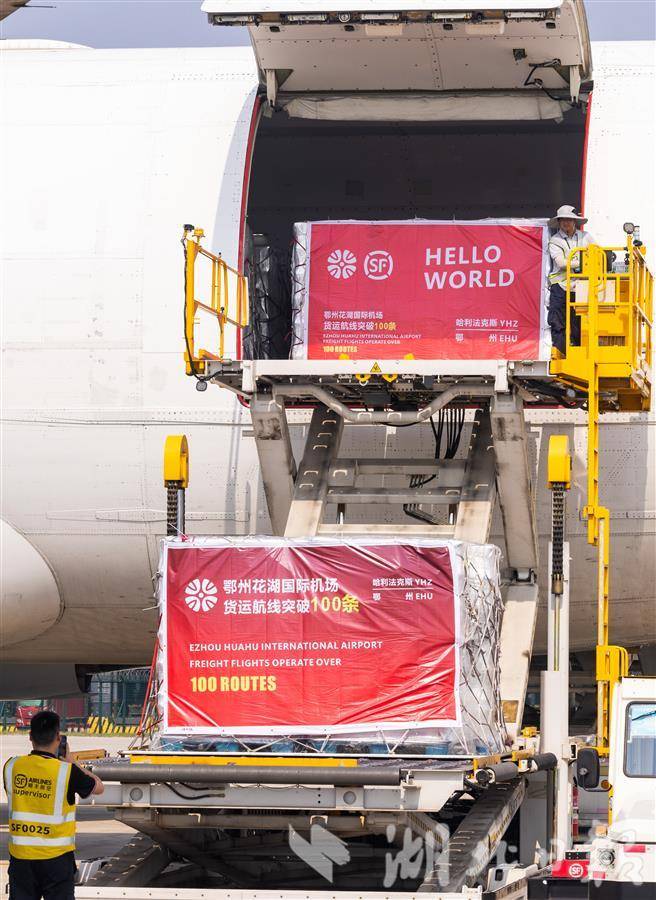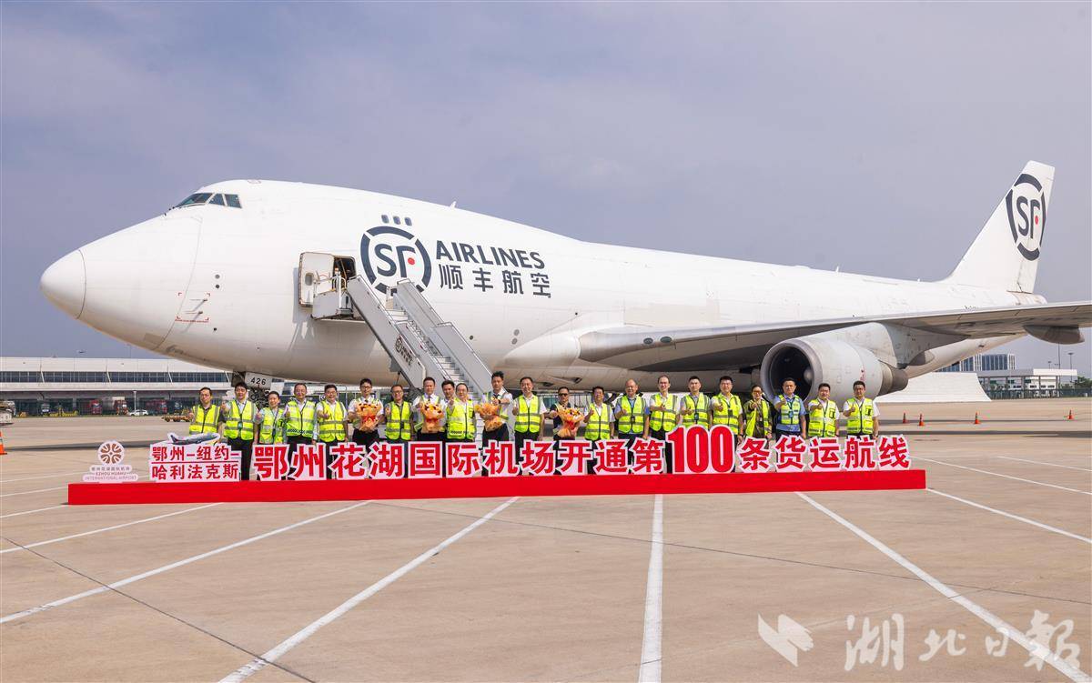 5月25日,“鄂州-纽约-哈利法克斯”国际货运航线开通,这是花湖国际机场首条直飞加拿大的货运航线,也是花湖国际机场开通的第100条货运航线。目前,花湖国际机场开通的货运航线数量和速度位居全国第一。其中国内货运航线58条,国际货运航线42条,初步构建起辐射全球的国际货运航线网络。(湖北日报全媒记者 薛婷 通讯员 刘小进 王星予 摄)