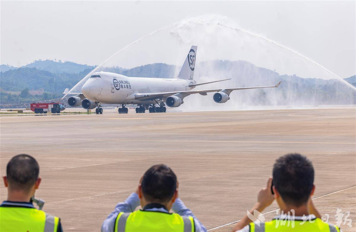 顺丰航空O3190平稳落地花湖国际机场,接受最高礼仪“过水门”。