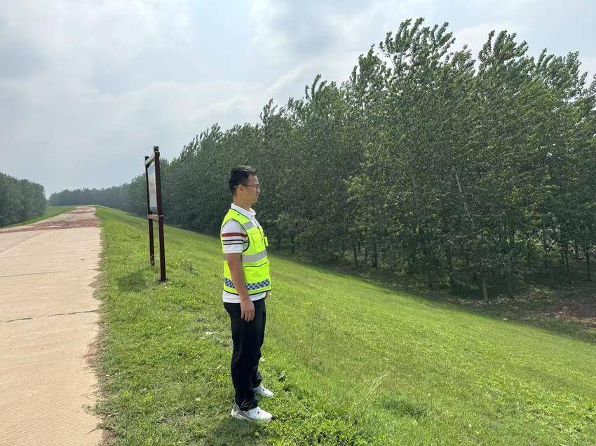 清晨的薄雾还未散尽,一位矫健的身影已经出现在荆江大堤江陵柳口段的堤防上。他时而俯身检查堤坡草皮,时而进入护堤护岸林间观察林木的生长情况,动作娴熟而专注。他就是江陵分局最年轻的段长——胡尧,一位用脚步丈量责任、用汗水诠释担当的90后江陵河道人。