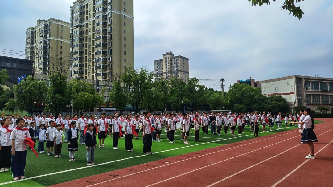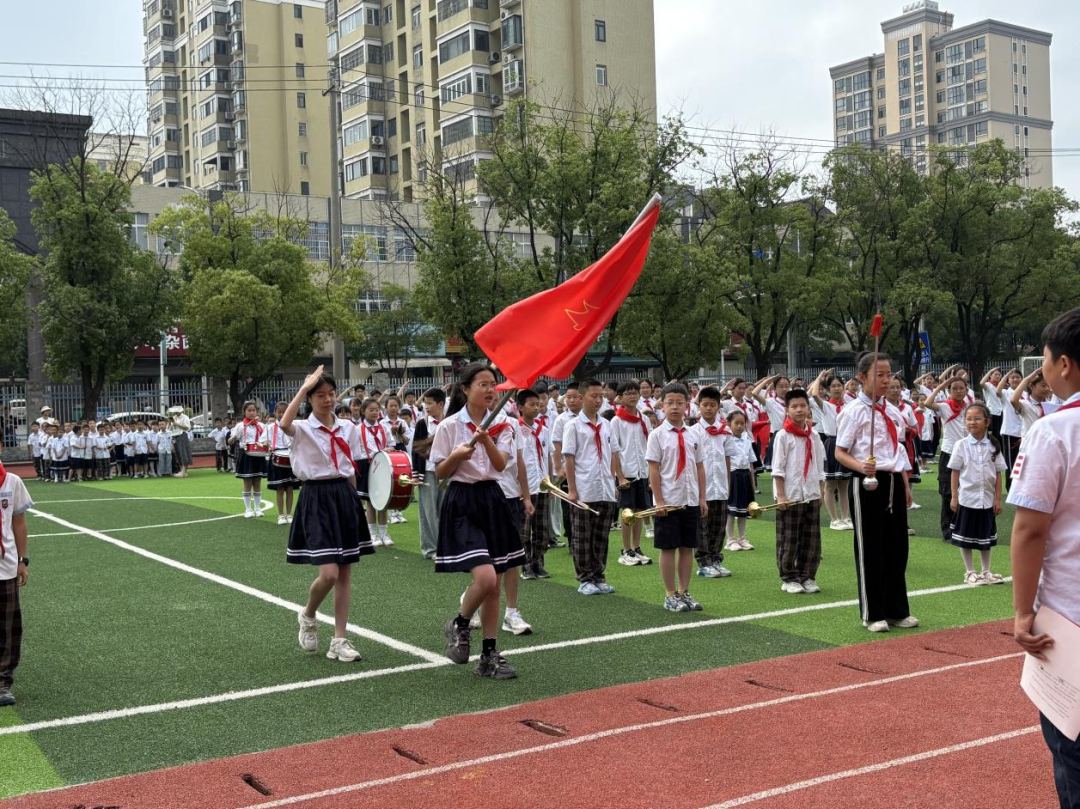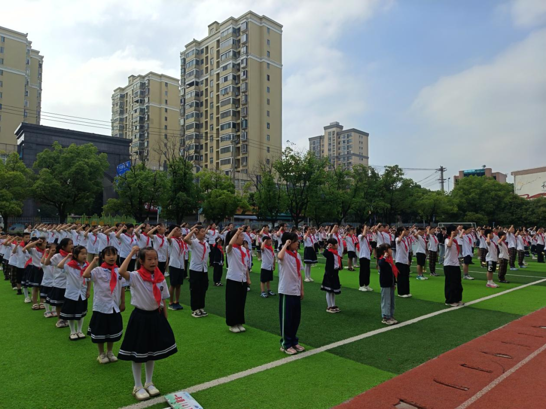 全体师生齐唱《中国少年先锋队队歌》,嘹亮的歌声响彻校园,唱出对少先队组织的热爱与自豪。