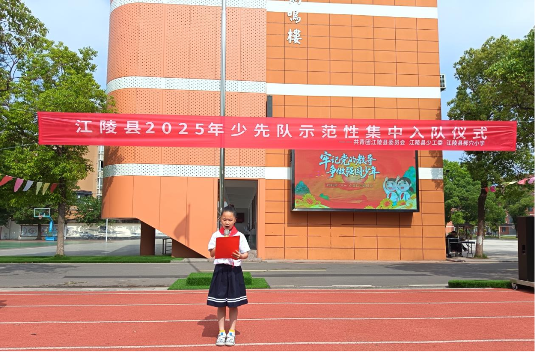 5月23日,共青团江陵县委、江陵县少工委在江陵县郝穴小学举办“牢记党的教导 争做强国少年”江陵县2025年少先队示范性集中入队仪式。
