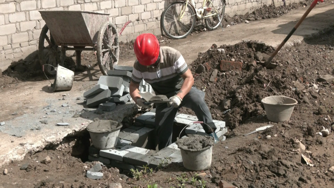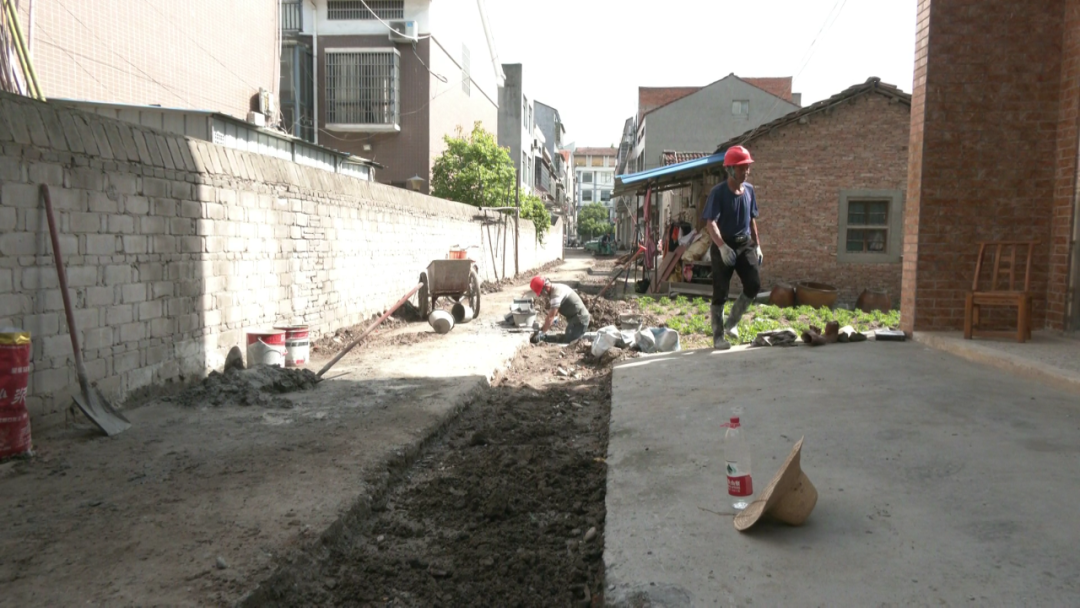 在马家寨乡污水管网延伸工程的施工现场,工人头戴安全帽,熟练地拿起砖块、裹上水泥,使其与雨水井周围砖块严丝合缝。