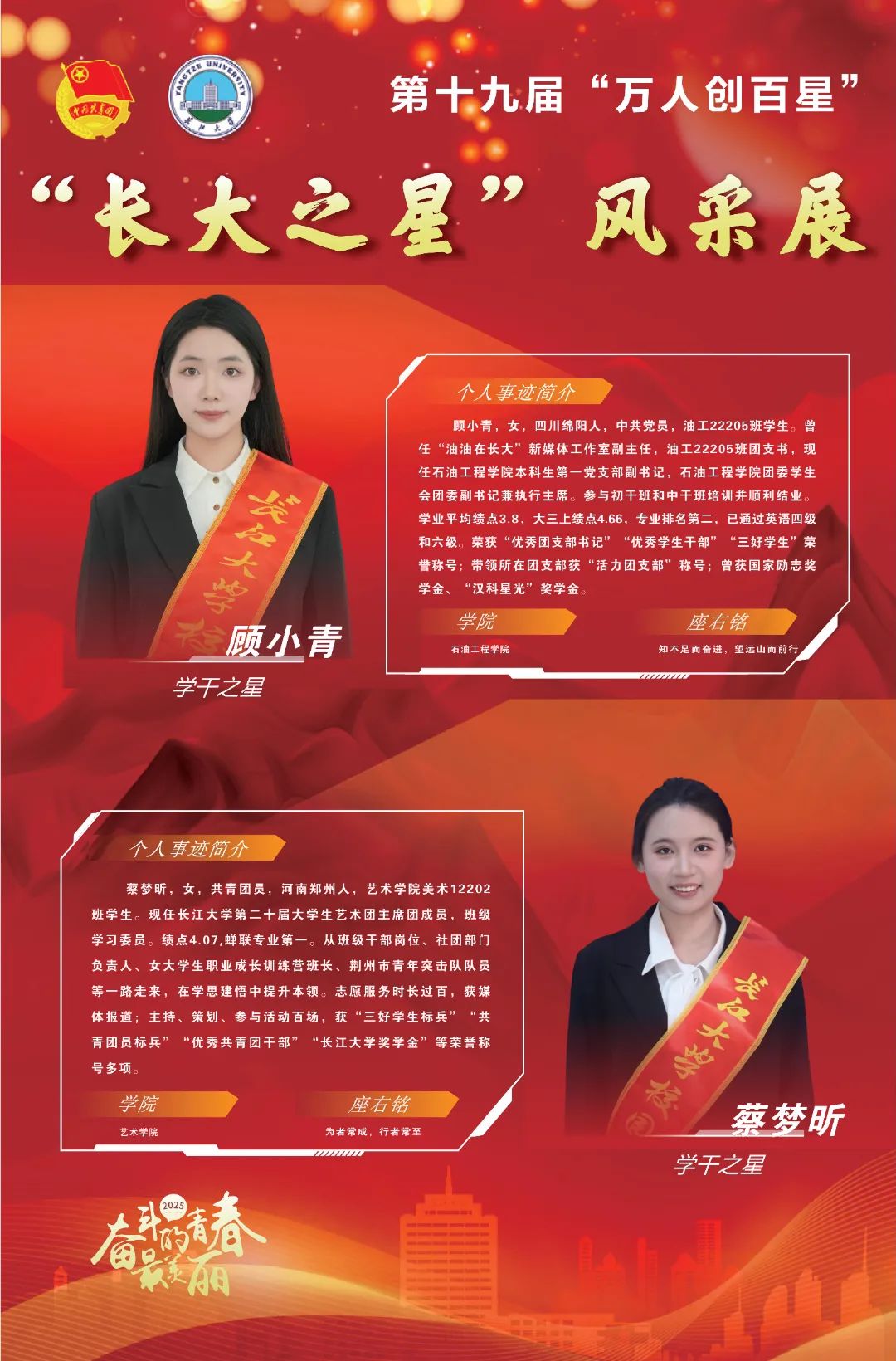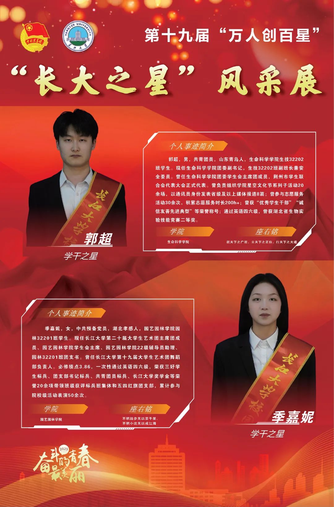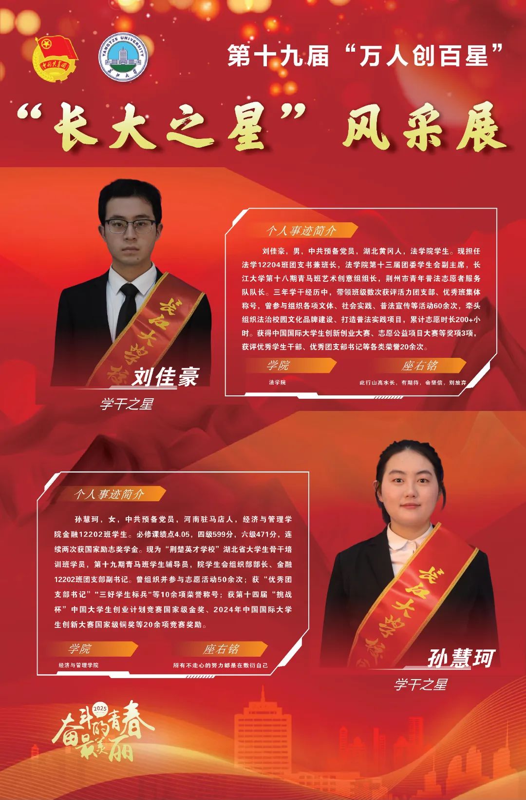 现在,让我们共同见证,第十九届(2025)“万人创百星”“学干之星”的风采!