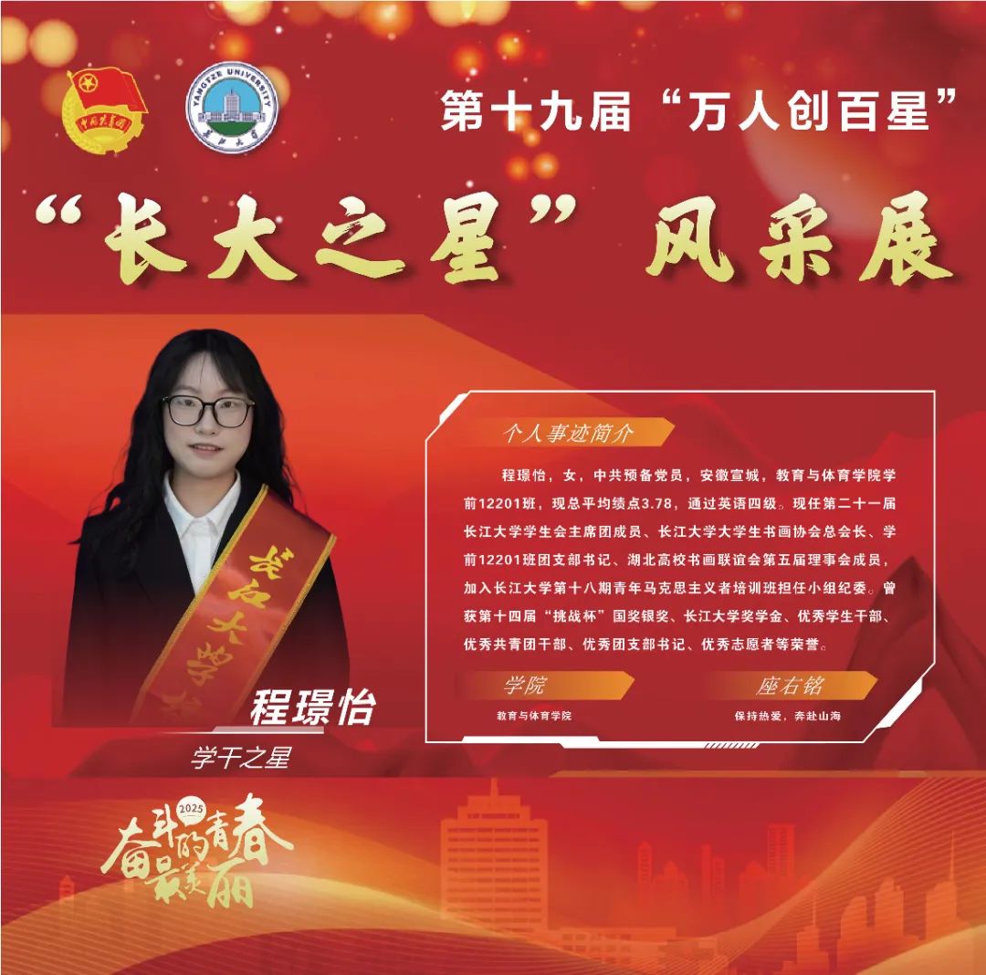 湖北日报客户端讯 青春绽芳华,决胜双一流!作为“育在长大”的品牌活动,长江大学“万人创百星”始终致力于培育德智体美劳全面发展的长大青年。十九载“万人创百星”,千余名“长大之星”奔赴国家建设一线发光发热。2025年,“万人创百星”再启新程,续写榜样华章。