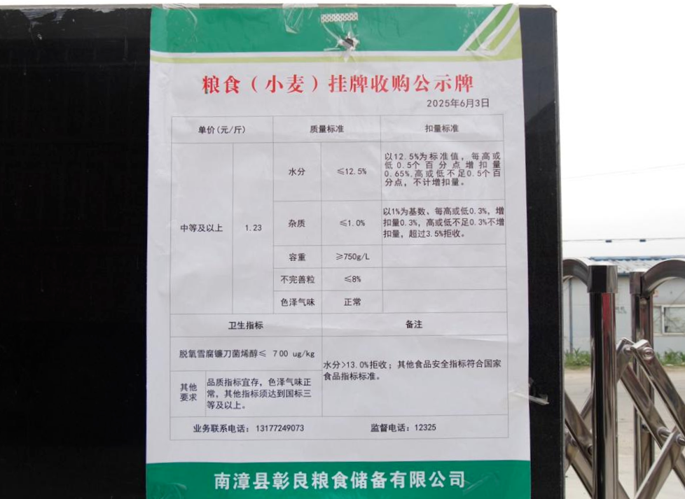 在武安镇界碑头村新建成的武东中心库,一辆辆运粮卡车有序排队,经快速质检、精准称重后,驶入卸粮区。 通过新引进的筛选机高效清除杂质,金灿灿的麦粒便沿着振筛线输送入库。