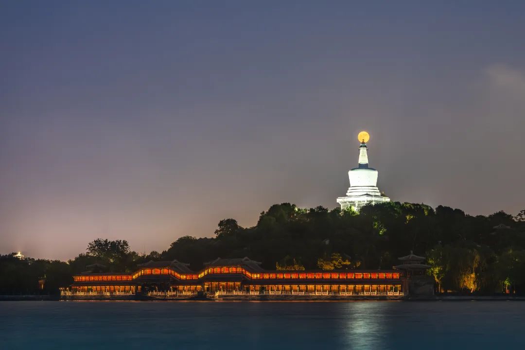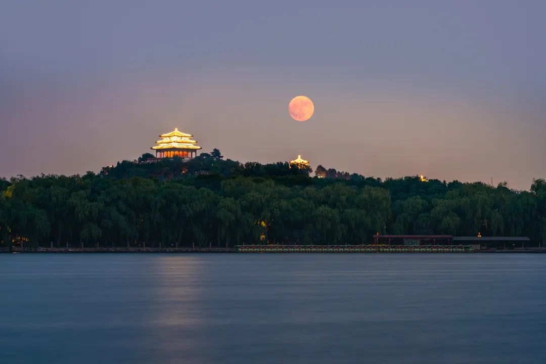 2024年6月21日,“最低满月”亮相北京北海公园上空。(资料图)
