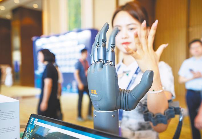 湖北日报讯 (记者刘宇、马文俊、通讯员刘凯、实习生范载岳)失去右臂的残障人士,借助智能仿生手,可流畅弹出钢琴曲;仅重49克的AR眼镜,能多语种翻译、问答搜索、拍照……6月13日,第三届软件创新发展大会在武汉举行,杭州强脑科技、灵伴科技带来的尖板眼演示,迅速俘获一众专业参会者。