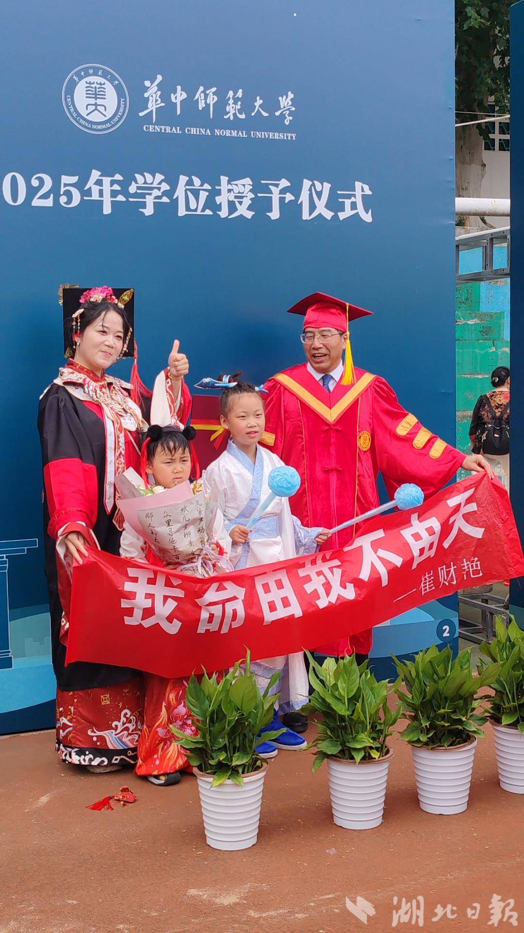 湖北日报讯(记者韩晓玲、实习生陈雯茜、通讯员党波涛、张晓冰、吴艳)“同学们,AI可写万物,却唯独写不出你们人生的脚本。”6月18日,华中师范大学2025年毕业典礼暨学位授予仪式在佑铭体育场举行,该校校长彭双阶这样寄语全体毕业生。