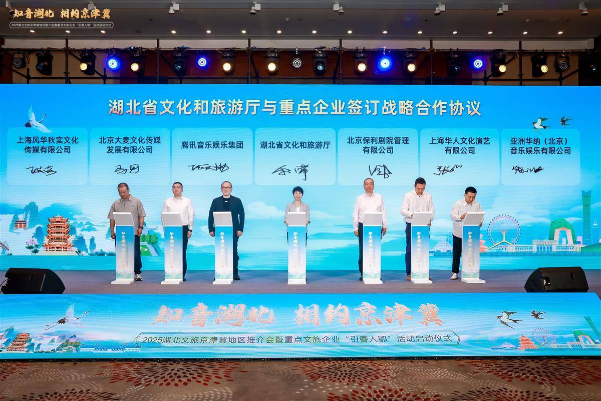 除了将湖北文旅资源和产品线路进行展示,本次来到北京,“知音湖北”也带来了满满的合作诚意。推介会上,湖北省文化和旅游厅与《中国国家地理》杂志社、北京保利剧院管理有限公司、腾讯音乐娱乐集团、上海华人文化演艺有限公司、北京大麦文化传媒发展有限公司、亚洲华纳(北京)音乐娱乐有限公司、上海风华秋实文化传媒有限公司7家分别签订了战略合作协议,为湖北文旅品牌注入强大动能,开启“以文塑旅、以旅彰文”的新篇章。
