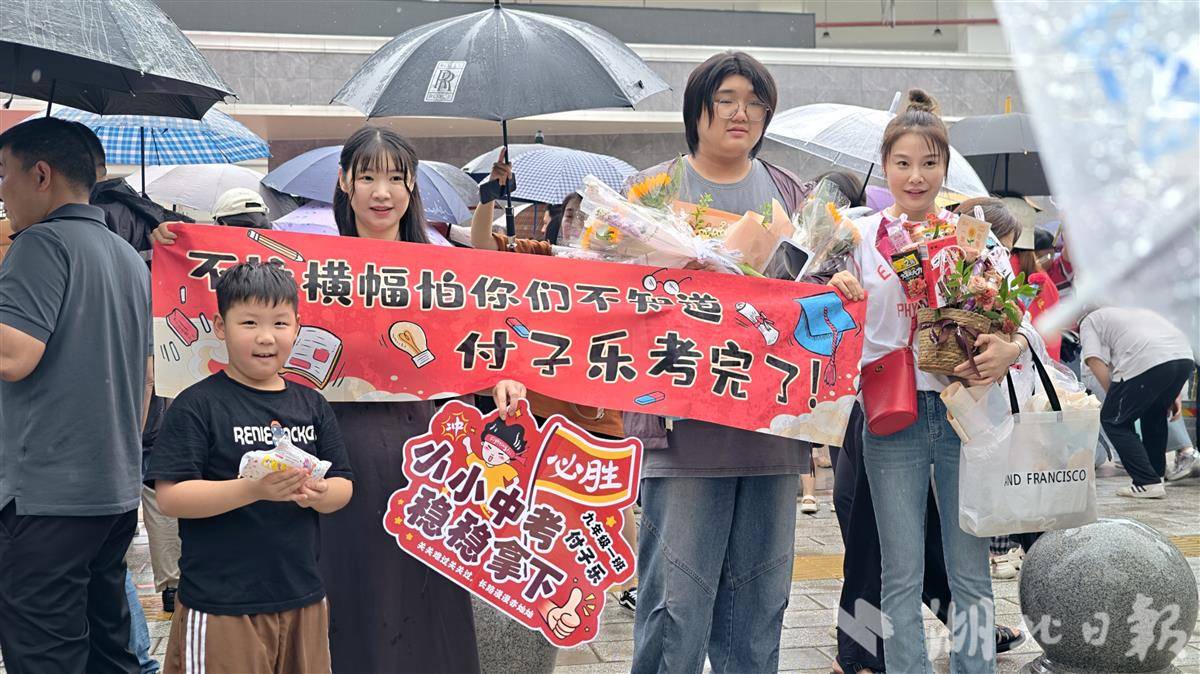 6月22日,武汉飘落细雨。随着中考最后一科考试结束铃声响起,武汉市双湖中学考点的考生们踏着轻盈步伐走出考场。雨伞下,少年们或笑着相拥击掌,或与守候的家长热情相拥。这群少年用九年寒窗完成青春首次大考,即将迎接更广阔的未来。 (湖北日报全媒记者 陈少哲 摄)