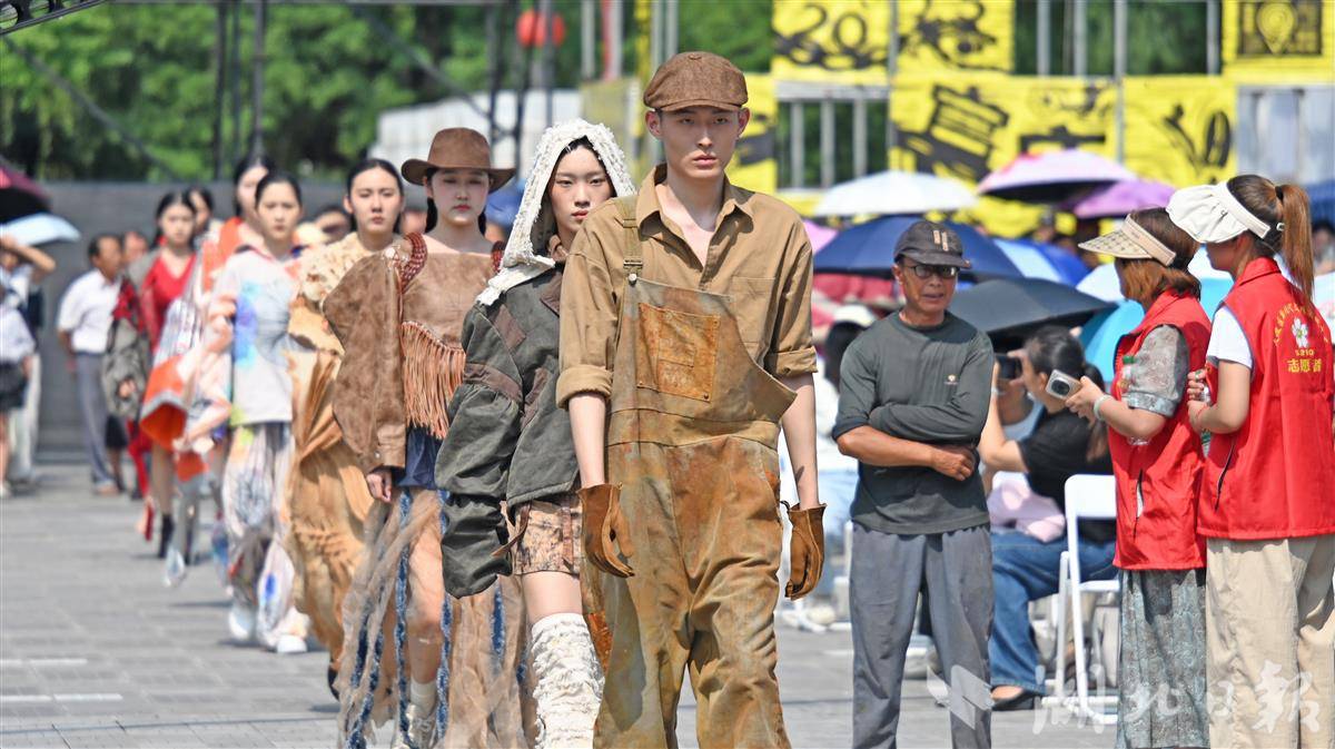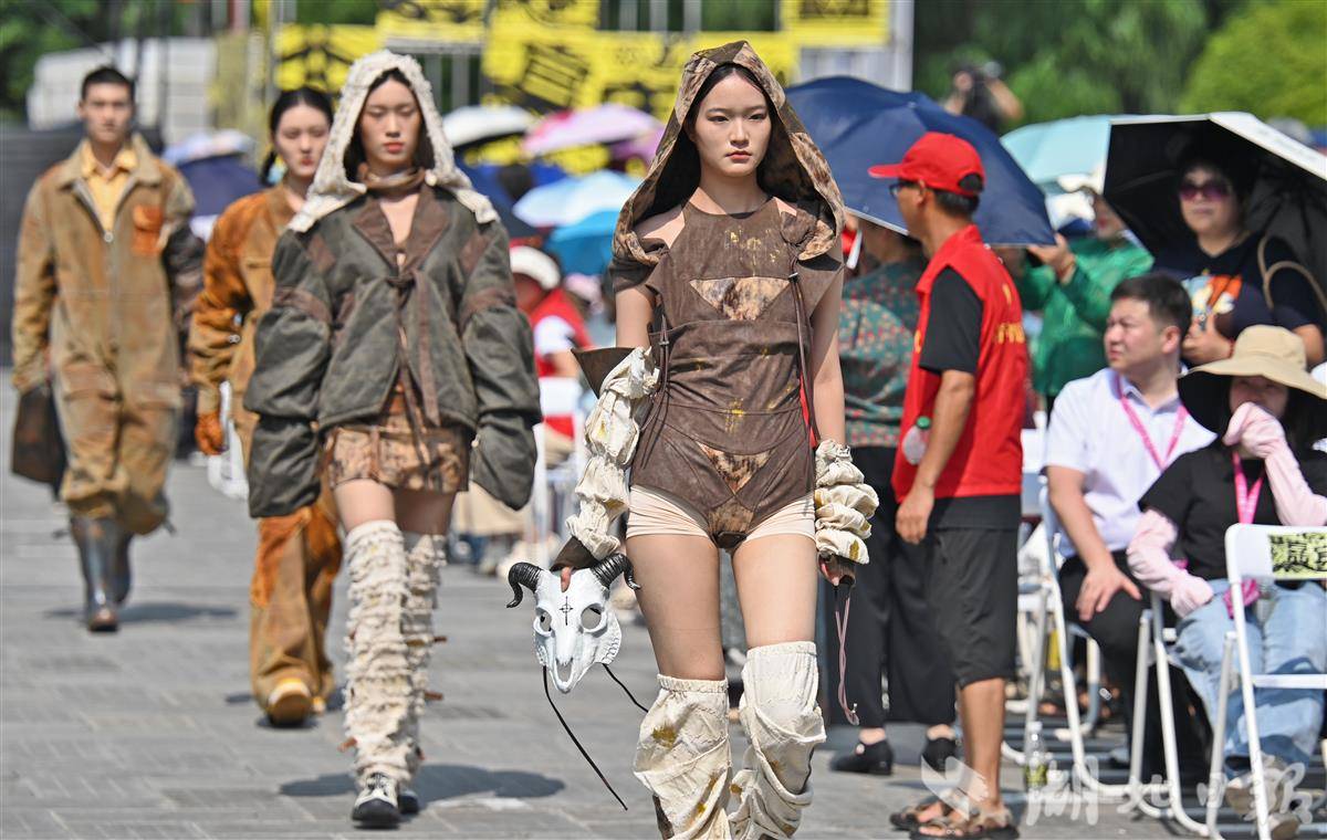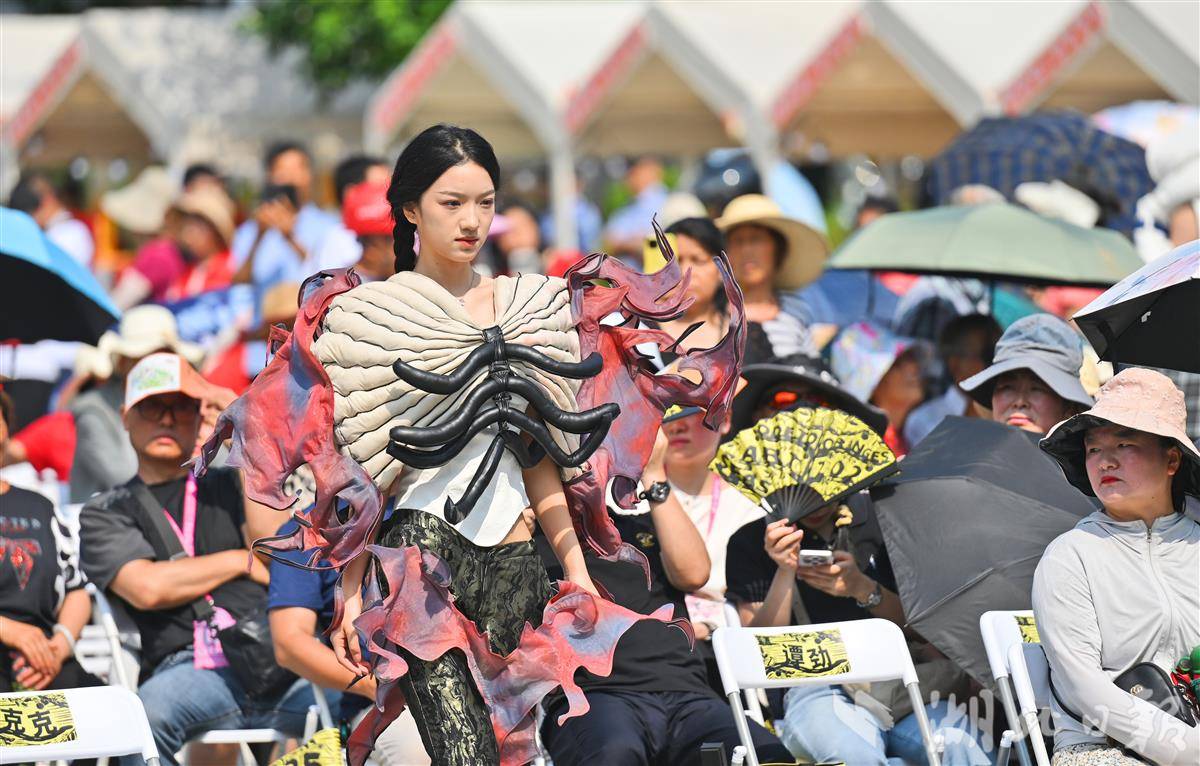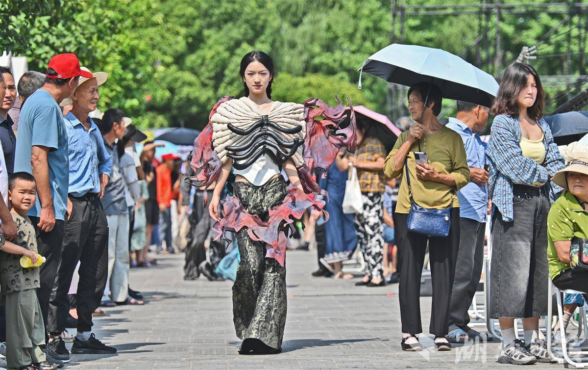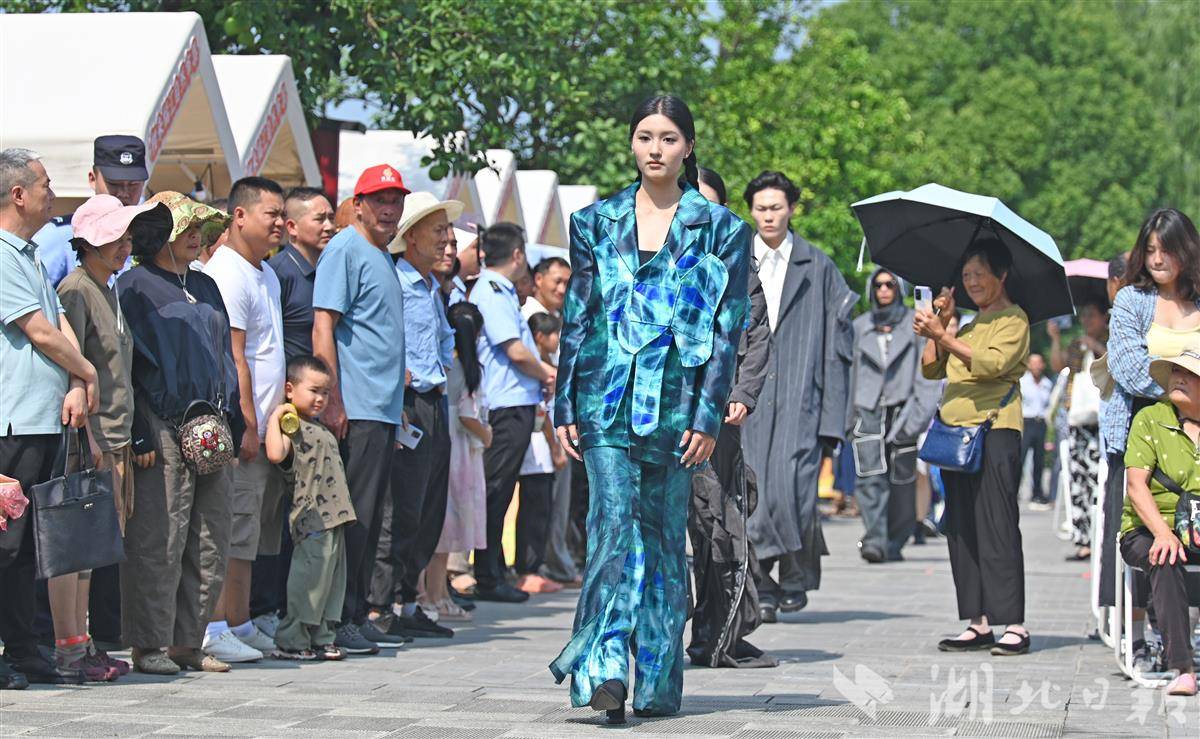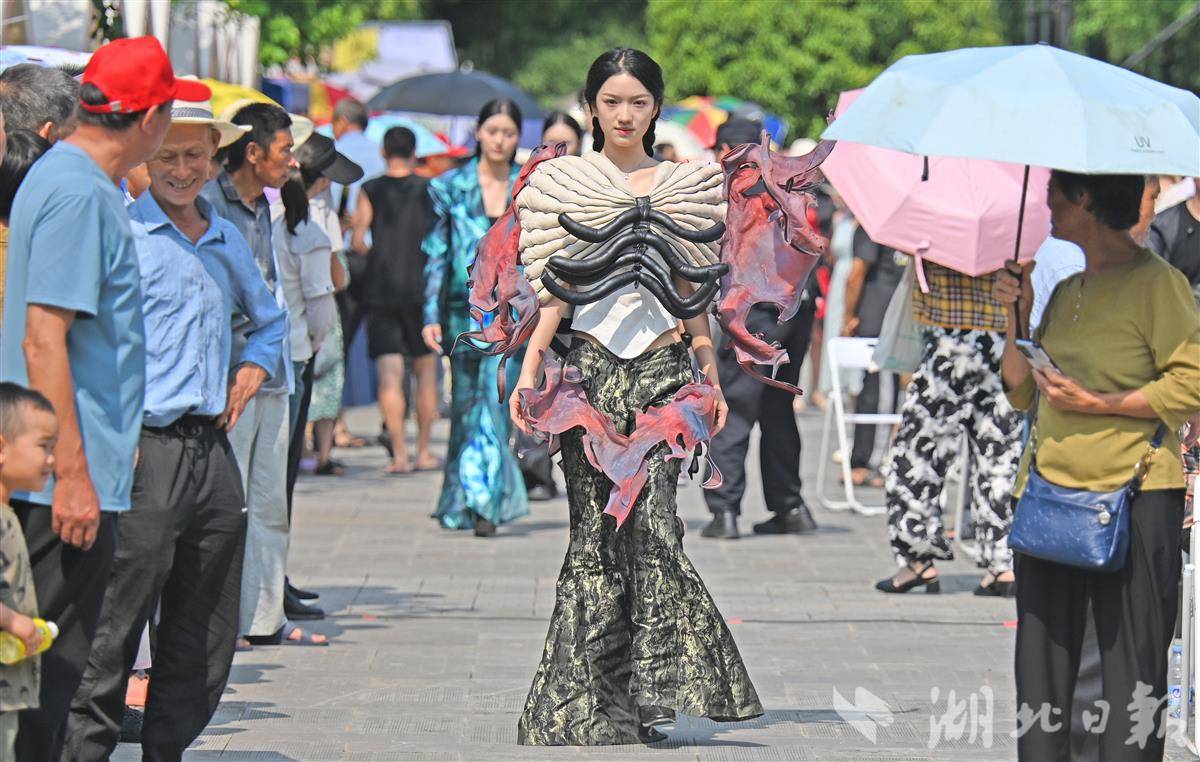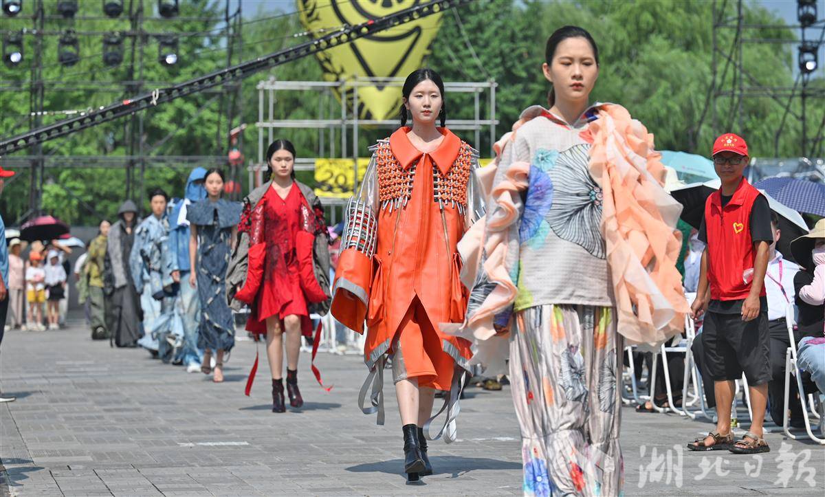 6 月 22 日上午,“橘颂艺术季 ——2025 在官庄” 开幕式在宜昌市夷陵区官庄村文化广场举行,精彩的服装秀《橙香衣语》受到观众的热烈欢迎。活动以屈原《橘颂》文化为内核,推动乡村振兴与产业升级,现场举行了创意设计成果颁奖、文化产业特派员结对帮扶签约等仪式。据悉,艺术季将持续至 7 月 28 日,通过 “艺术 + 农业 + 旅游” 模式,为湖北柑橘产业高质量发展注入新动能。宜昌柑橘种植面积超 200 万亩,2024 年产量突破 430 万吨,农业综合产值超 460 亿元。近年来,宜昌大力推进农文旅融合,打造了 3 个 4A 级柑橘主题旅游景区,本次艺术季将进一步促进屈原文化赋能柑橘产业链,丰富文旅业态。(湖北日报全媒记者 刘曙松 摄)