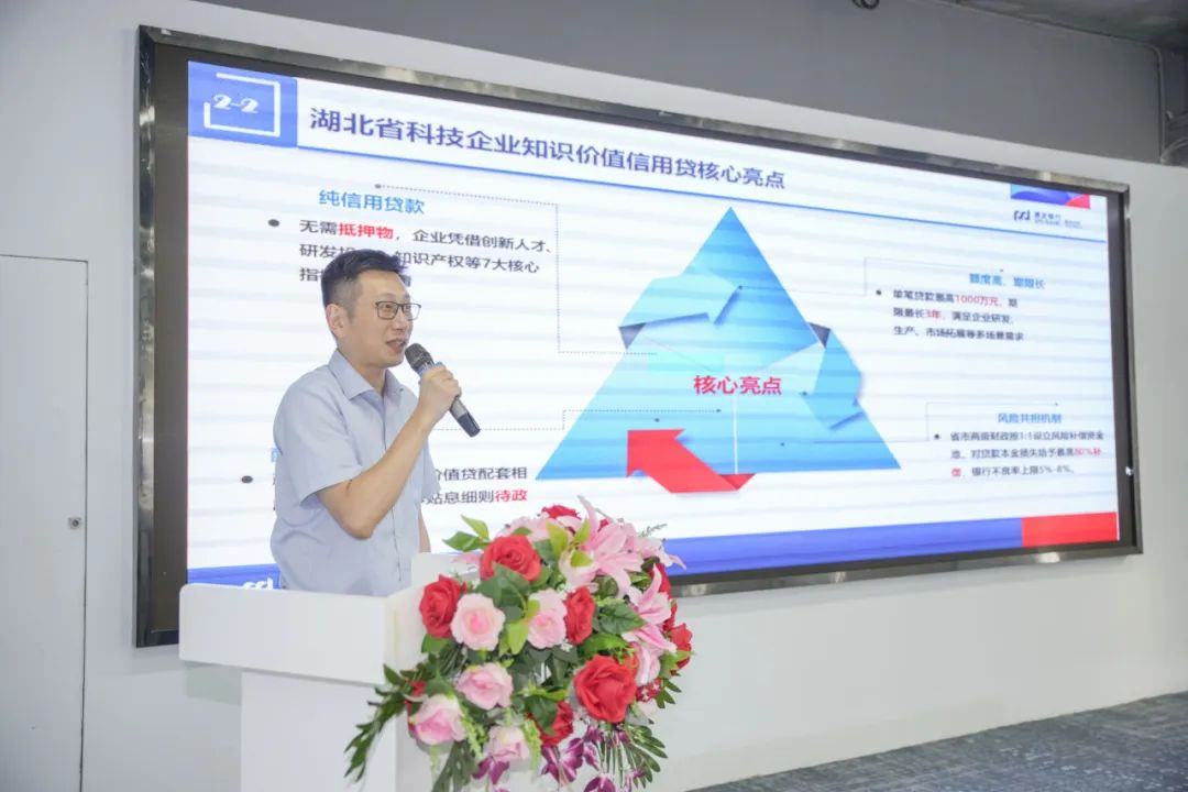 活动的核心环节 ——“科技型企业知识价值信用贷款和浦发银行科技金融产品”政策宣讲备受瞩目。浦发银行武汉分行产品经理详细解读了科技型企业知识价值信用贷款的政策要点,该政策针对科技型企业“轻资产、高成长”的特点,通过将企业知识产权、研发投入等“软资产”转化为融资信用,降低企业融资门槛,提升贷款可得性。这一政策引发了在场企业的热烈关注。