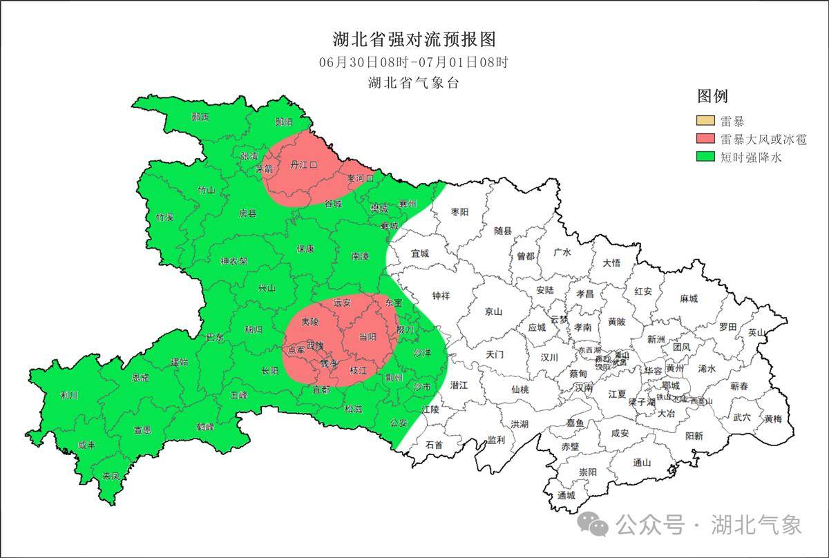 湖北日报讯(记者曾莉)6月30日6时39分,湖北省气象台发布强对流黄色省级预警:30日上午至夜间,恩施、宜昌、荆州西部、神农架、十堰、襄阳西部等地将有短时强降水(最大小时雨强40至80 毫米),局地有雷暴大风(8至11 级)和小冰雹等强对流天气。