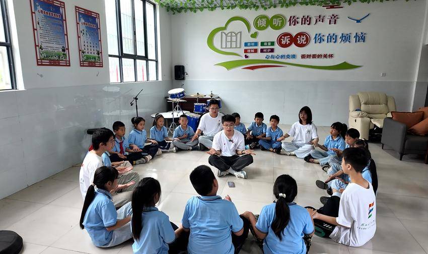 活动期间,高校学子志愿者们精心设计文化润心·非遗传递、纸上生花·共剪童心、龙腾鼓振·气韵传承、“棋”思妙想·乐在“棋”中、“心情驿站”·趣味心理、泥塑随心·指尖疗愈等十个板块内容,与学生孩子们共同体验实践的乐趣,通过互动体验,为孩子们的心灵成长撑起一片晴空。