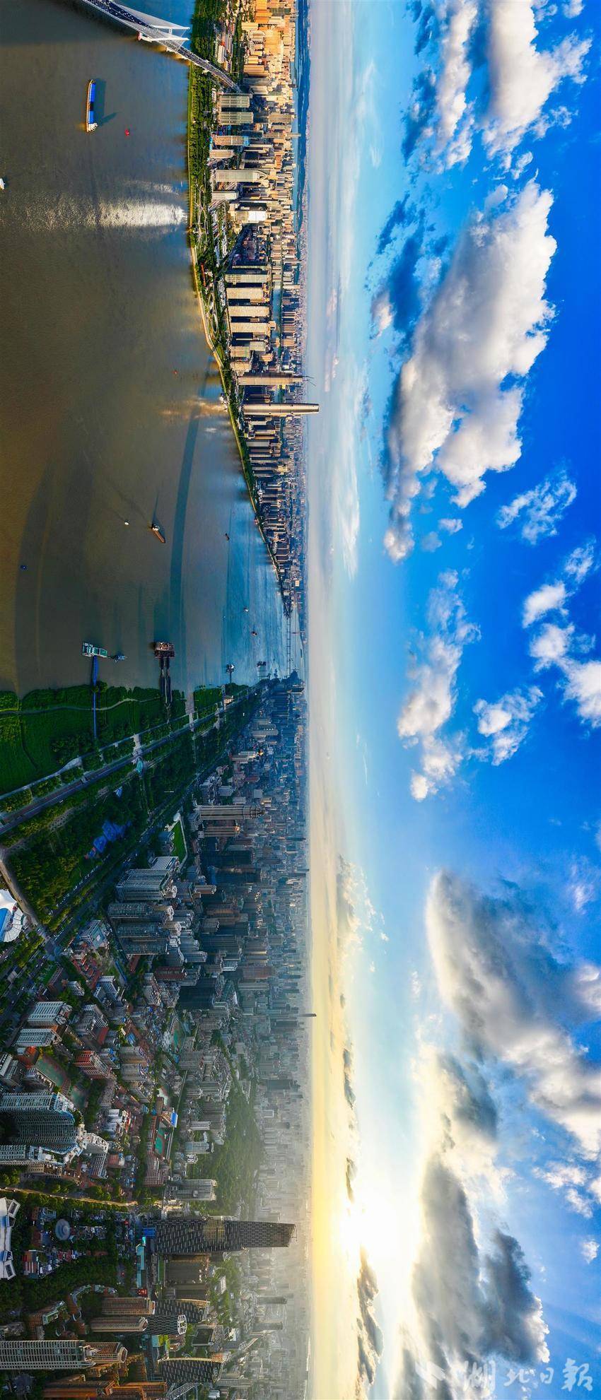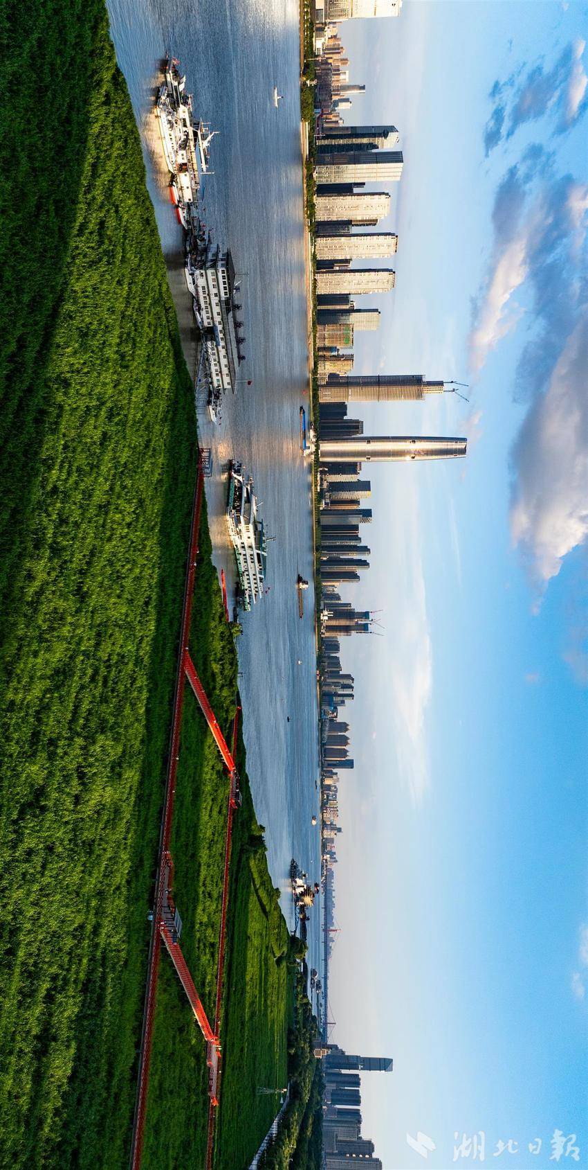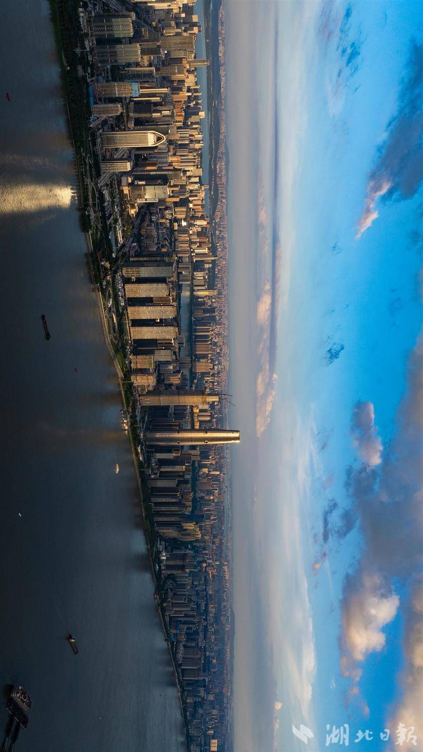 2025年7月1日,武汉天朗气清,白云满天,空气能见度极佳。傍晚时分,夕阳映射在武汉两江四岸的楼宇上,大片风光一览无余,绝美无比!(湖北日报全媒记者 何宇欣 摄)