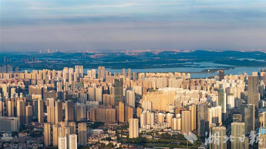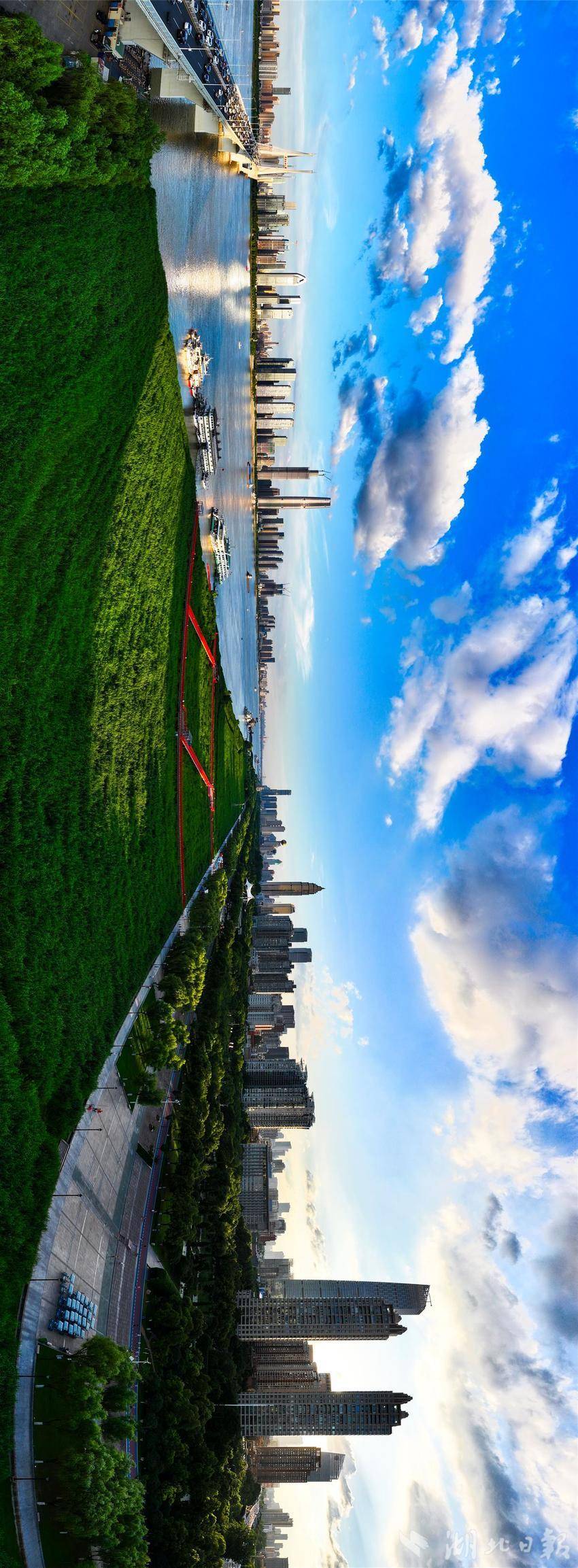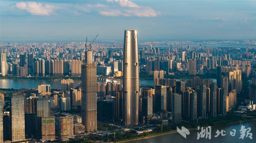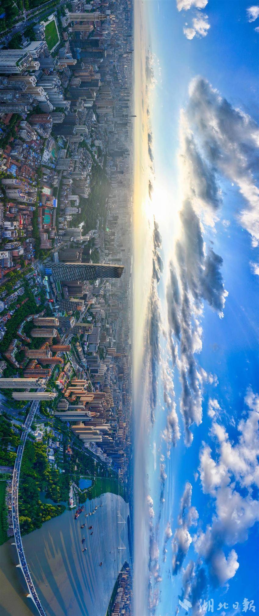 2025年7月1日,武汉天朗气清,白云满天,空气能见度极佳。傍晚时分,夕阳映射在武汉两江四岸的楼宇上,大片风光一览无余,绝美无比!(湖北日报全媒记者 何宇欣 摄)